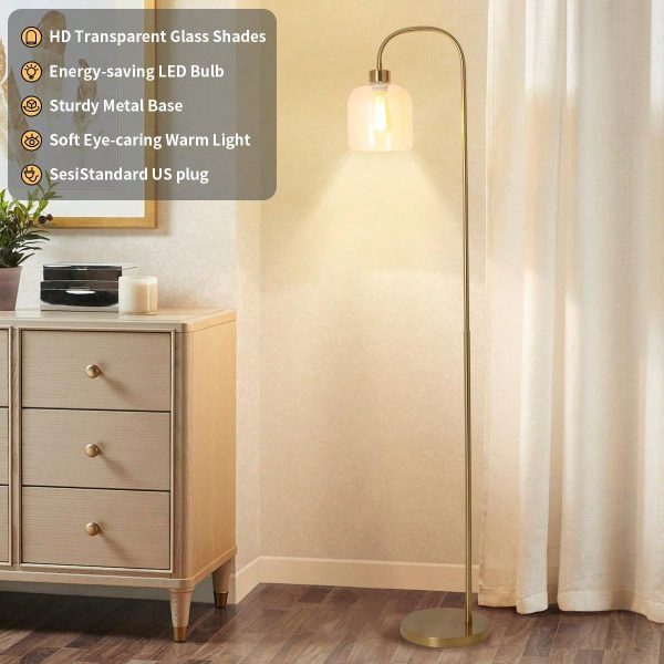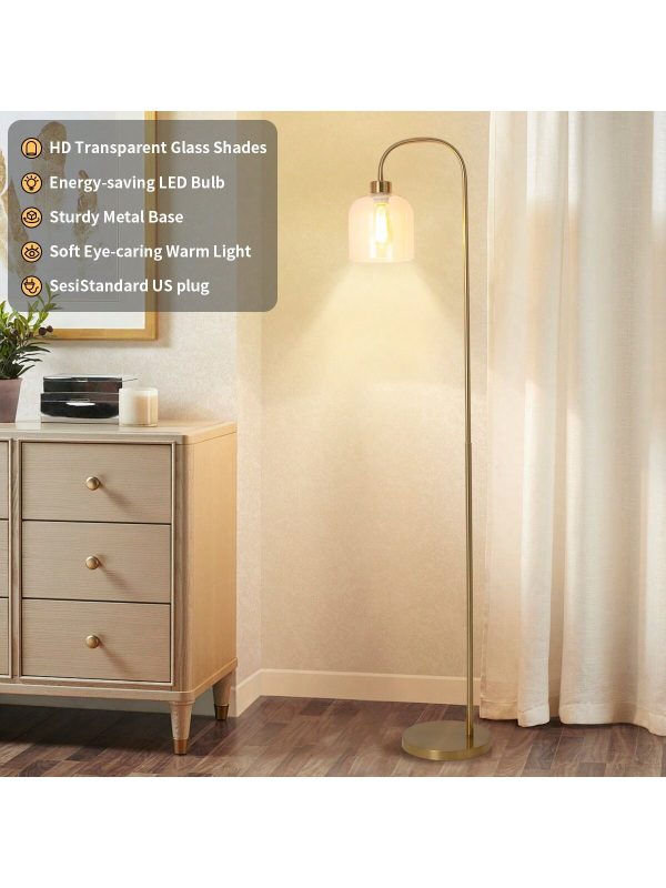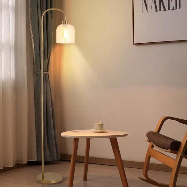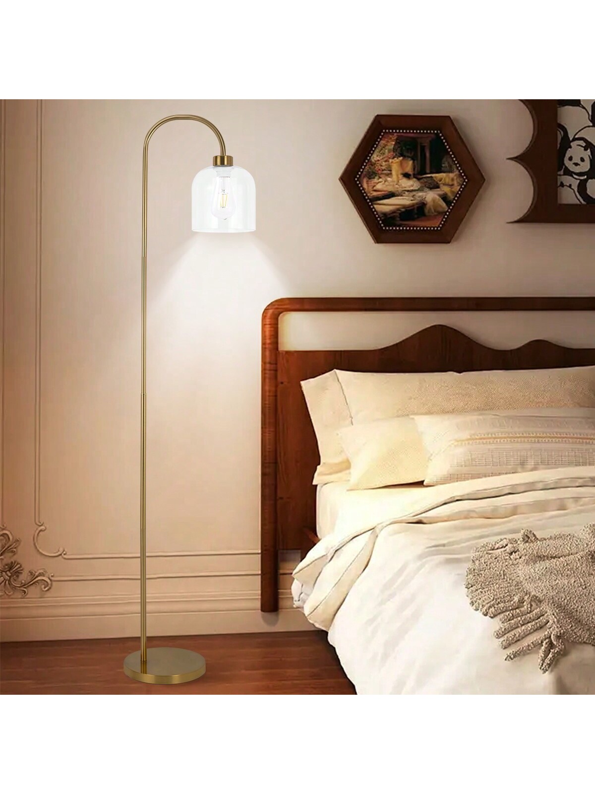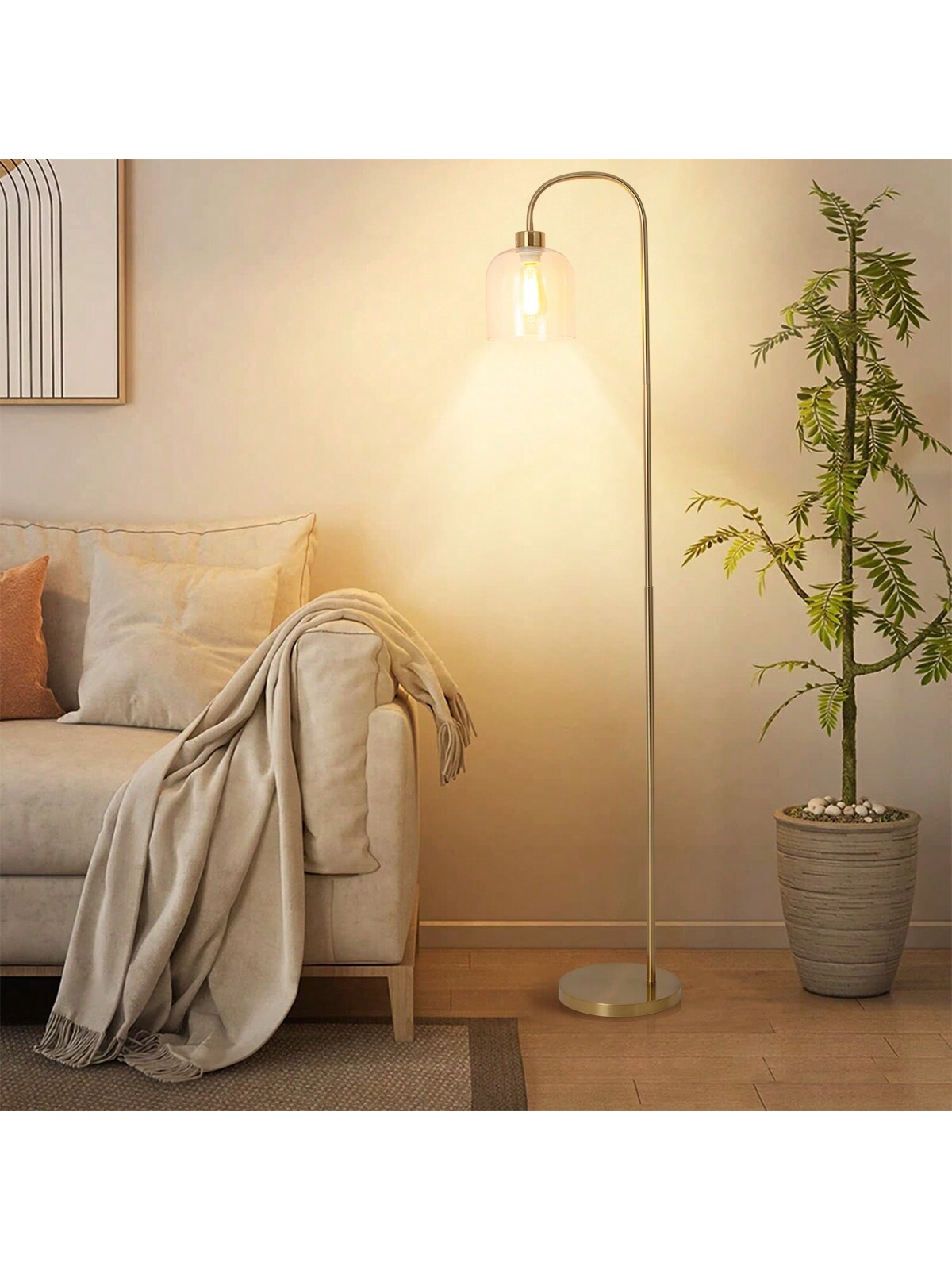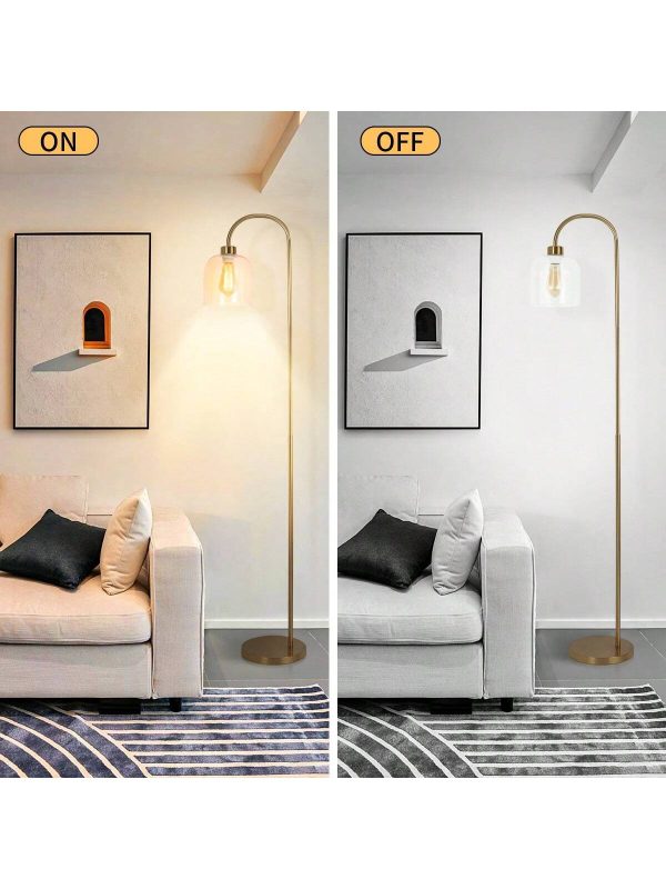 1-Pack Glass Industrial Floor Lamp, Gold Tall Floor Lamp With Glass Lampshade, Suitable For Living Room Bedroom Study Room (Bulb Not Included) Foot switch