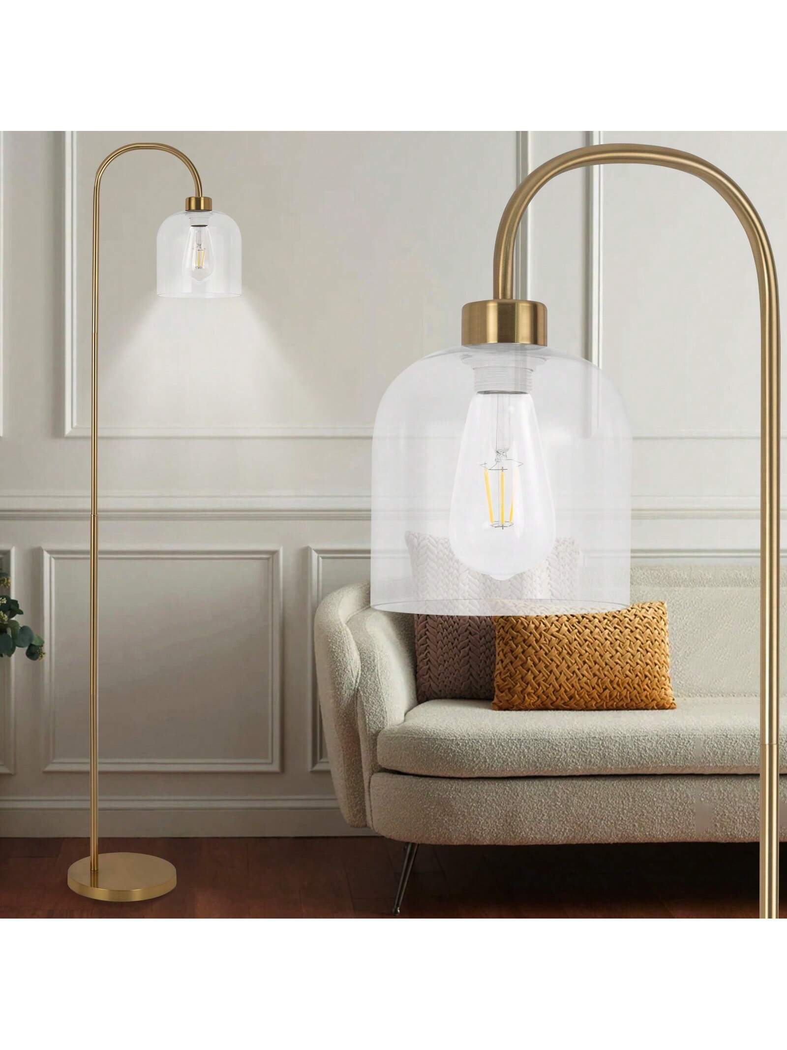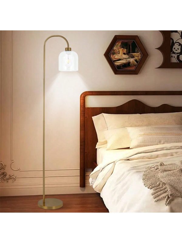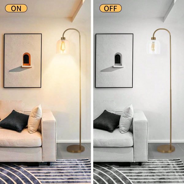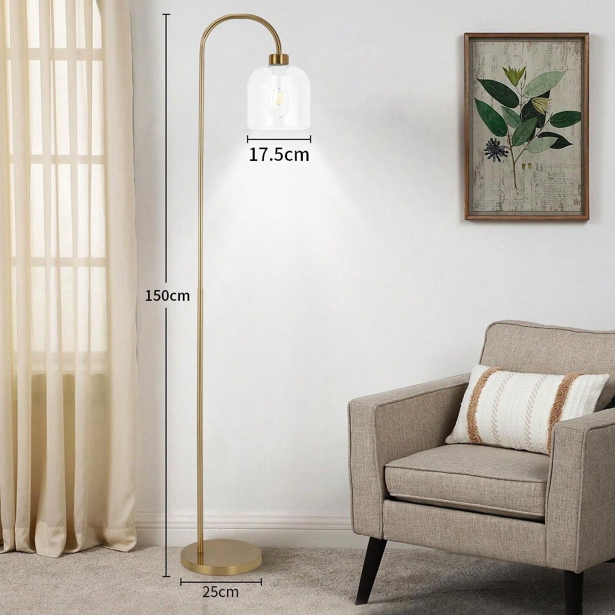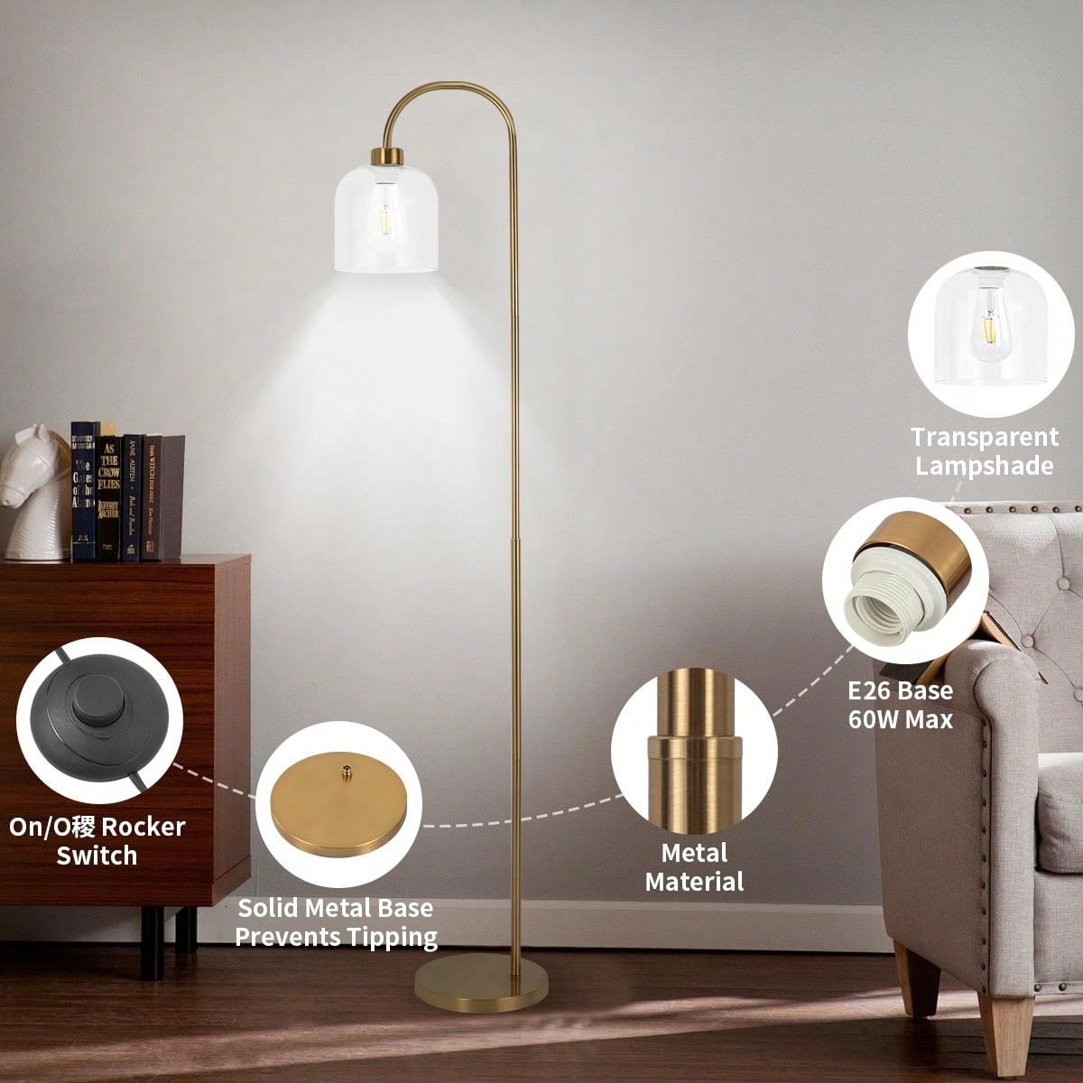 This industrial-inspired floor lamp features a gold base with a clear glass lampshade, offering a stylish and functional lighting solution for your living room, bedroom, or study room. The tall design provides ample illumination, while the foot switch makes it easy to operate without needing to bend over. Its sleek, minimalist aesthetic blends effortlessly with modern or industrial decor, and the open glass shade allows for maximum light output. Although the bulb is not included, the design is compatible with most standard bulbs, offering flexibility in choosing your preferred lighting type.