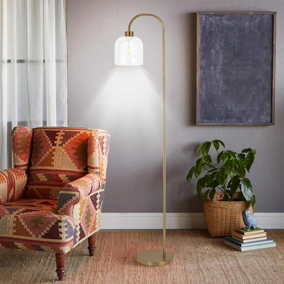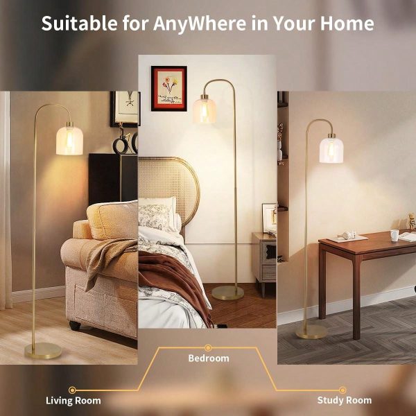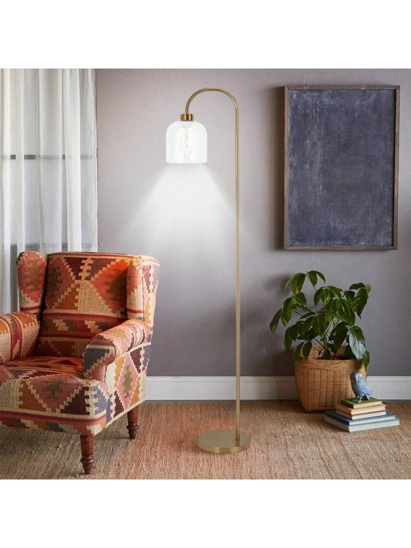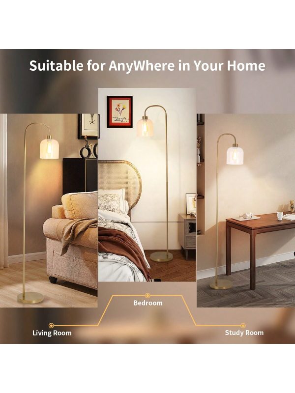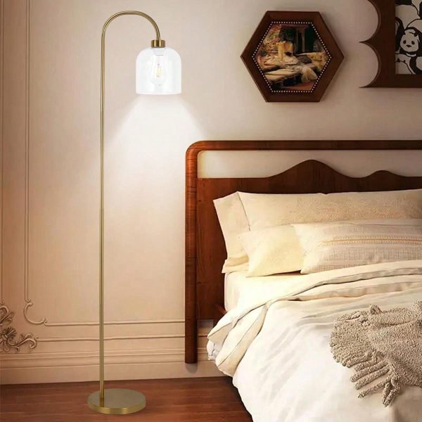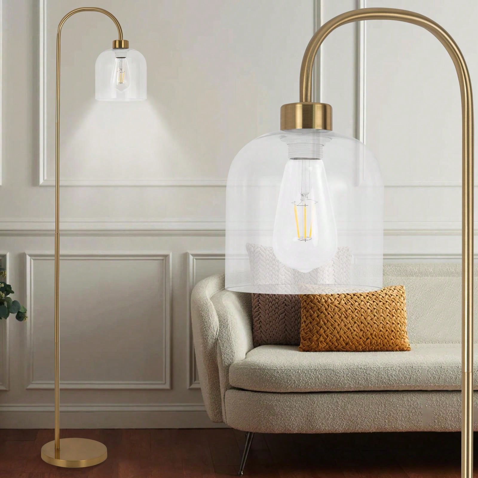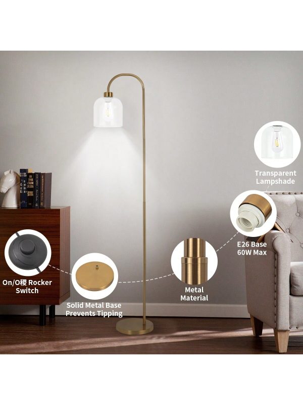This industrial-inspired floor lamp features a gold base with a clear glass lampshade, offering a stylish and functional lighting solution for your living room, bedroom, or study room. The tall design provides ample illumination, while the foot switch makes it easy to operate without needing to bend over. Its sleek, minimalist aesthetic blends effortlessly with modern or industrial decor, and the open glass shade allows for maximum light output. Although the bulb is not included, the design is compatible with most standard bulbs, offering flexibility in choosing your preferred lighting type.
