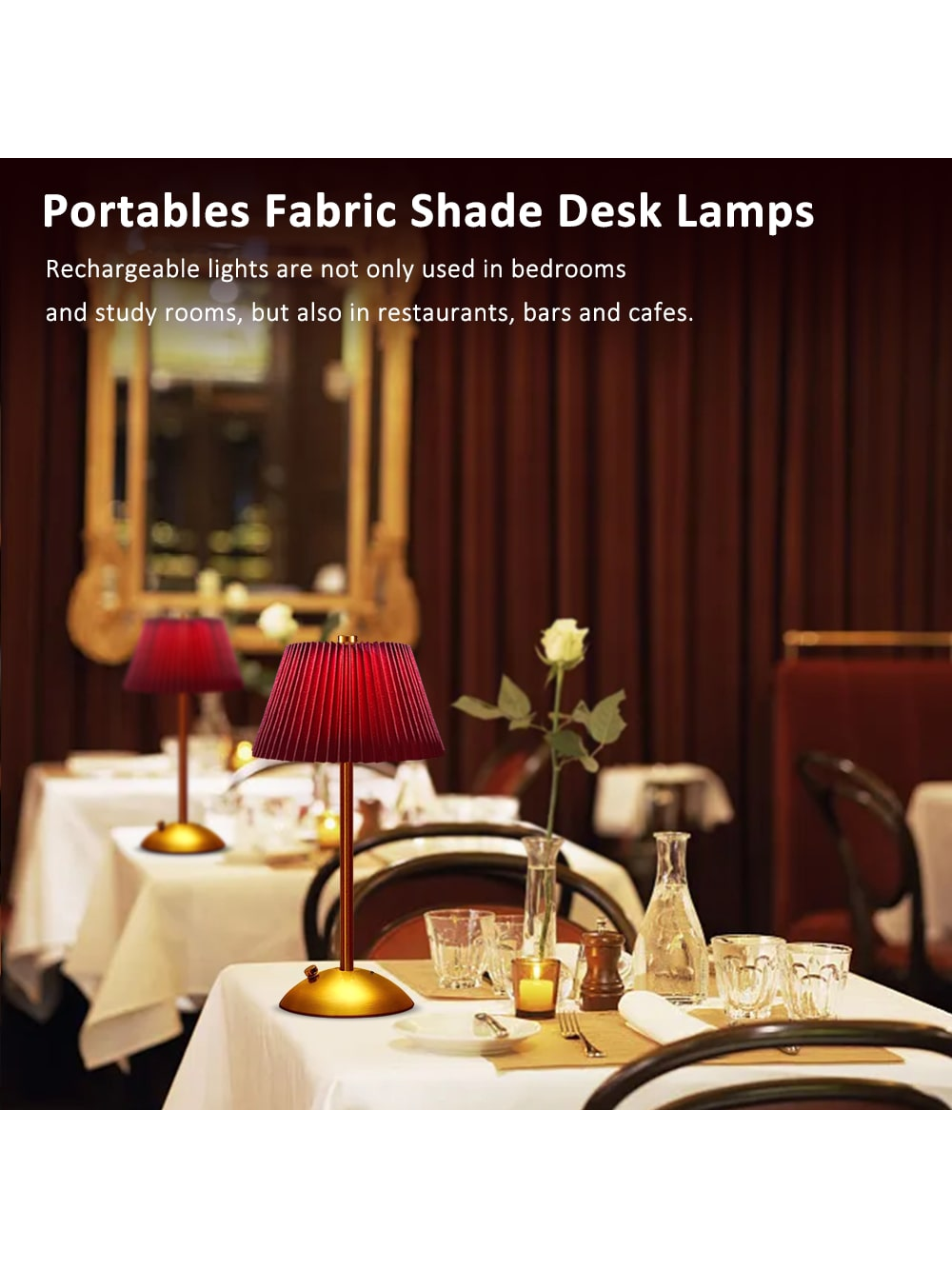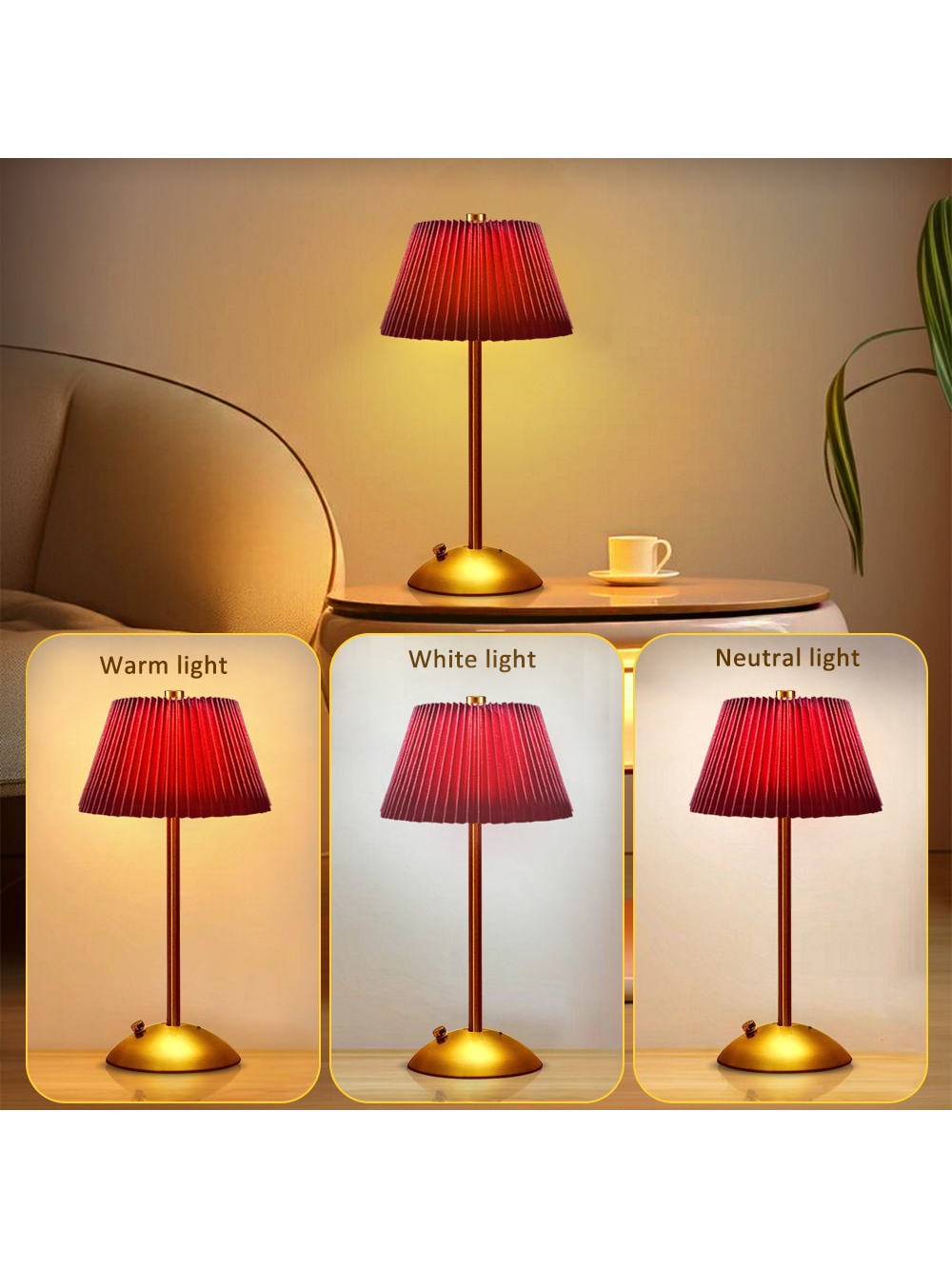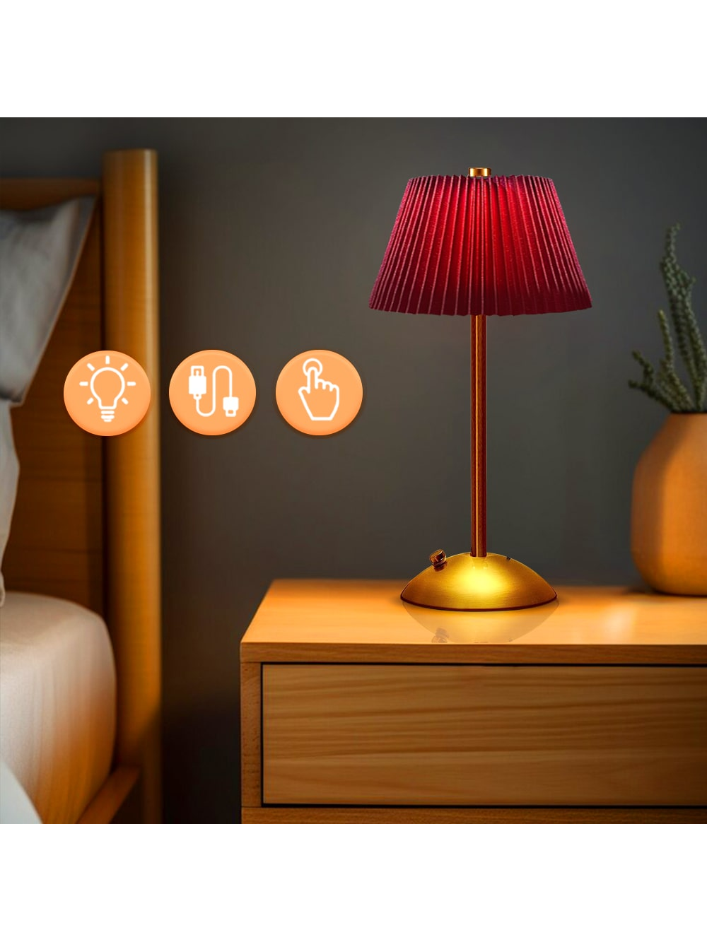 1Pack Portable LED Table Lamp With Touch Sensor, 3 Color Touch Control Rechargeable Lamp,3-Levels Brightness Metal Desk Lamp, Night Light, Bedside Lamp,Dining Room Lamp Red