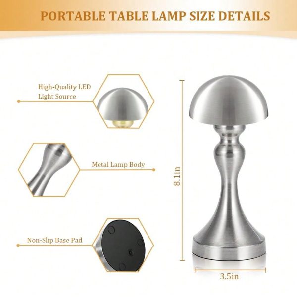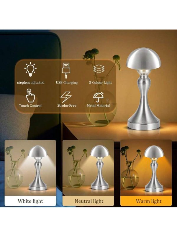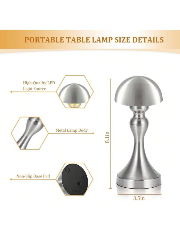 1Pack Portable Metal Desk Lamp,Cordless LED Table Lamp,Touch Control Rechargeable Lamp,3-Levels Brightness Room Decor Desk Lamp,Bedside Lamp,Night Light Silver