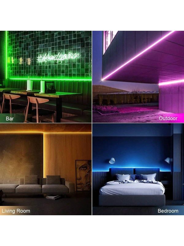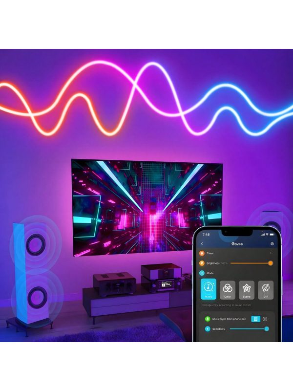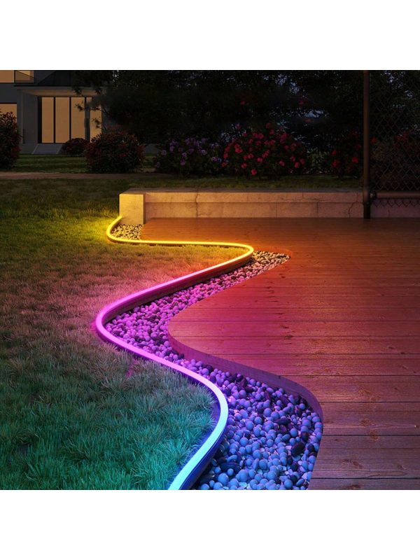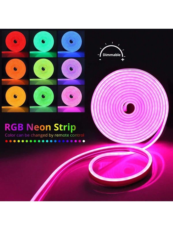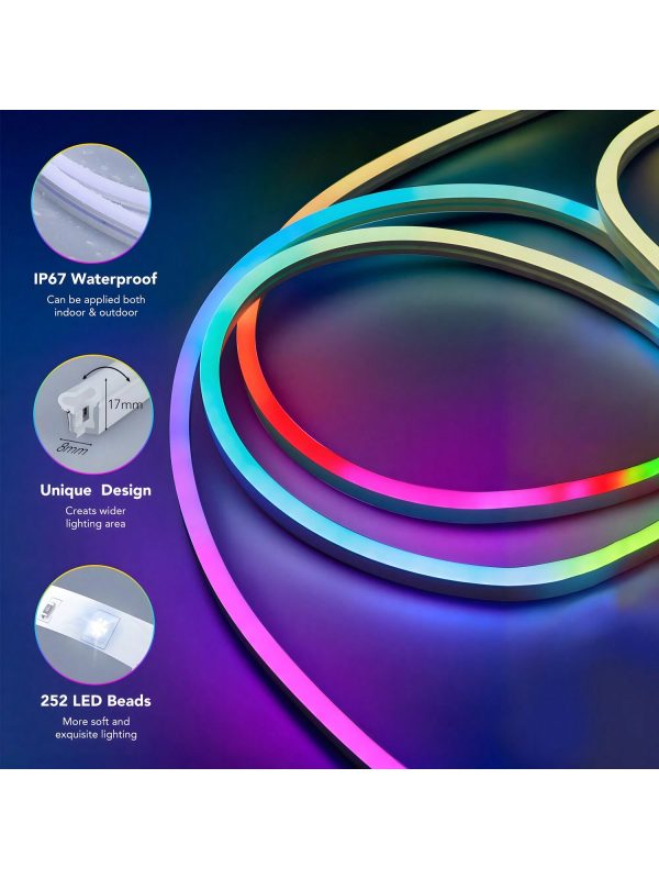 Add vibrant lighting to any space with this flexible LED neon rope light. Measuring 16 feet, it??s perfect for both indoor and outdoor use. The waterproof construction makes it ideal for outdoor patios, while the RGB color-changing feature brings dynamic flair to your home. Additionally, the music sync capability creates an immersive experience, making it perfect for parties or events.