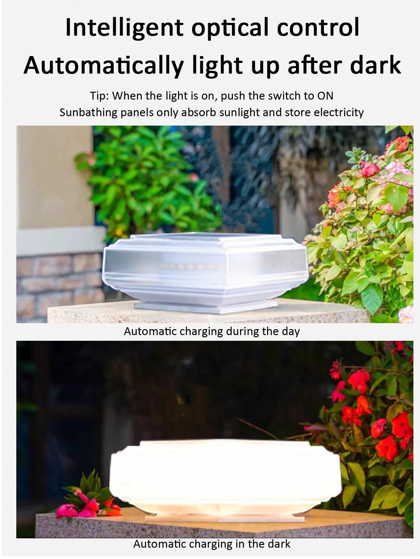 Elevate your outdoor space with these modern solar-powered pillar lights. Their minimalist design and waterproof build make them ideal for outdoor patios, fences, or courtyard railings. Available in a vibrant multicolor option, they add a colorful and stylish touch to your garden or walkway. These solar lights charge during the day and automatically illuminate at night, providing both convenience and charm.