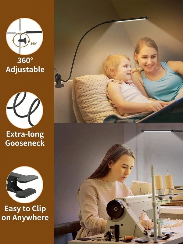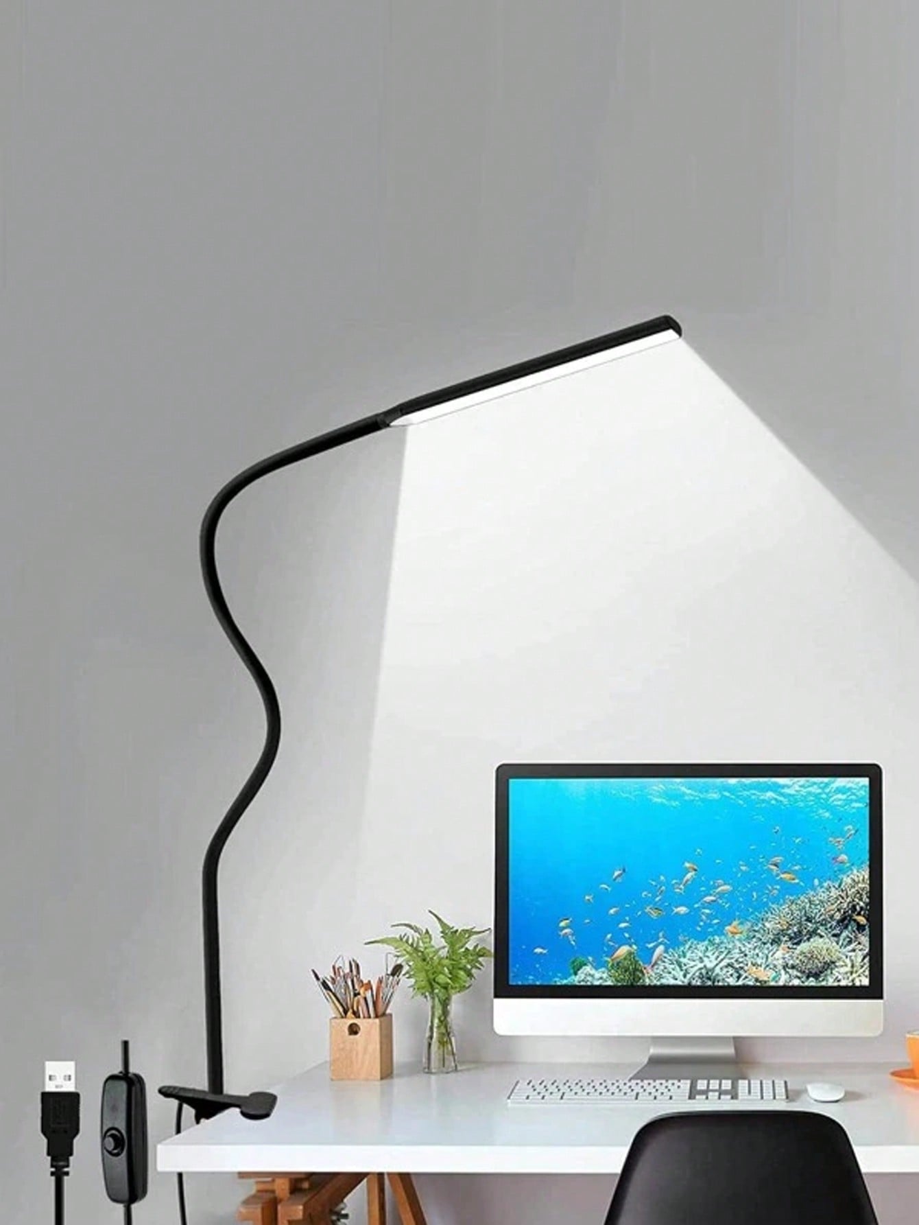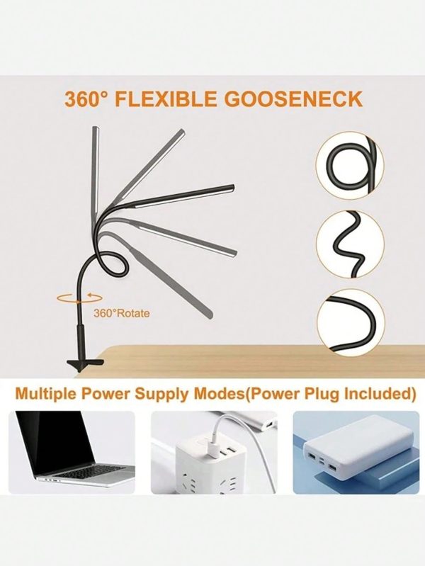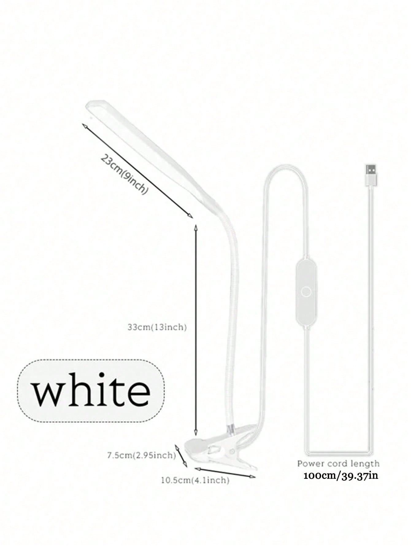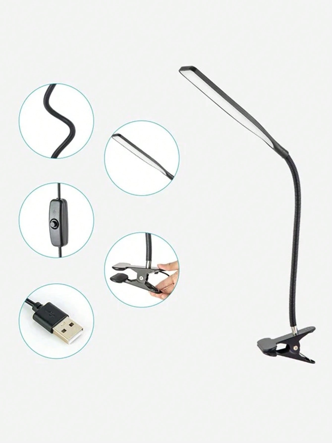 1pc Desk Lamp Clip-On Led Reading Light, Flexible Gooseneck Table Lamp, Suitable For Headboard, Workbench, Home Office, Computer White