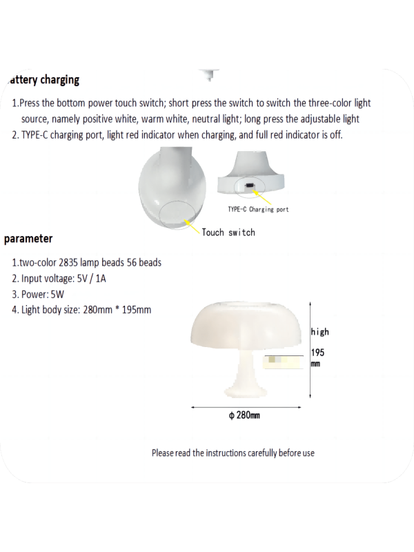 Brighten your bedroom with this unique mushroom-shaped table lamp in a vibrant orange color. Designed with a durable PC shade, it offers three distinct light modes??cool, warm, and neutral??giving you full control over the ambiance. Its dimmable feature allows you to adjust brightness levels to suit any time of day or activity. This modern nightstand […]