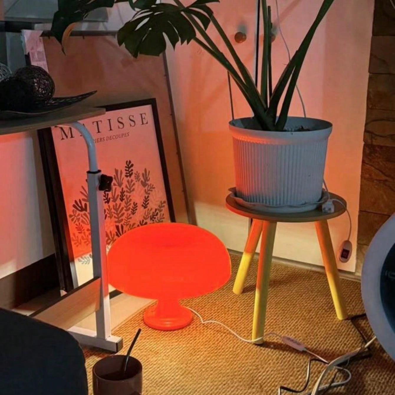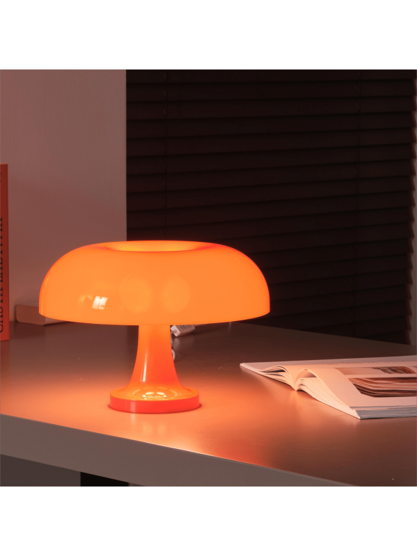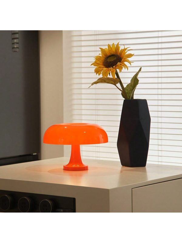 Brighten your bedroom with this unique mushroom-shaped table lamp in a vibrant orange color. Designed with a durable PC shade, it offers three distinct light modes??cool, warm, and neutral??giving you full control over the ambiance. Its dimmable feature allows you to adjust brightness levels to suit any time of day or activity. This modern nightstand lamp is perfect for bedrooms, living rooms, or even as a statement piece in creative spaces. Its playful design and functional versatility make it an excellent choice for contemporary decor.