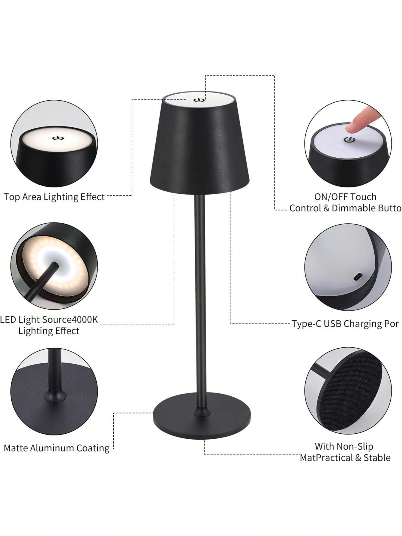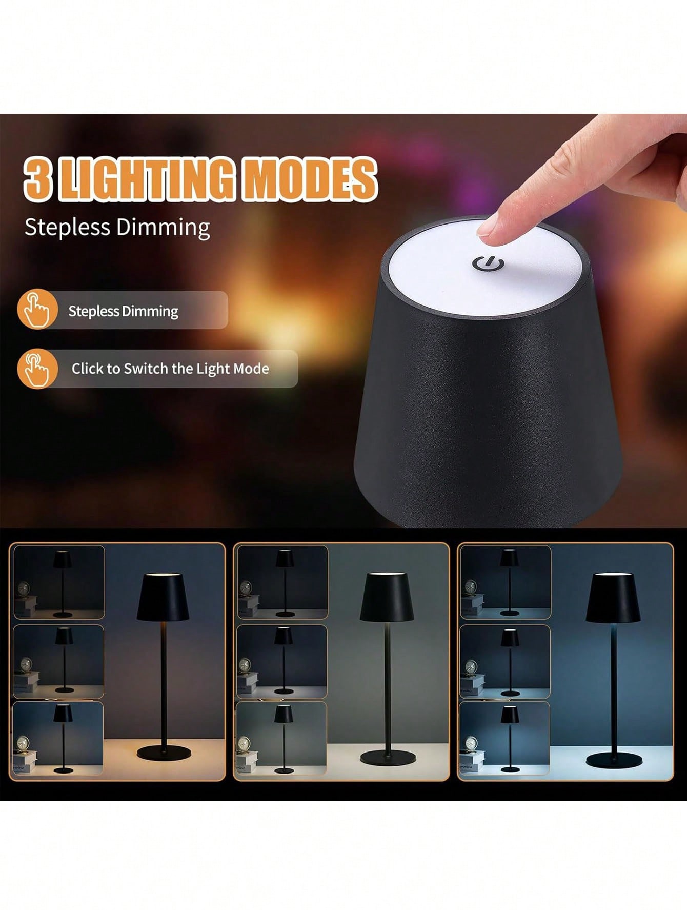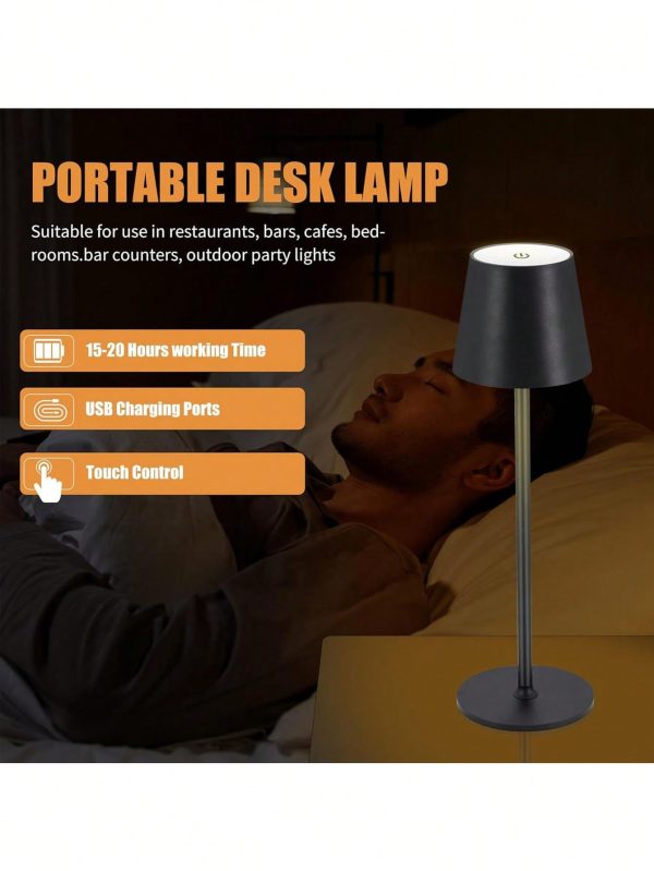 1pc Modern LED Table Lamp, Touch-Sensitive, USB Rechargeable, Portable Reading Desk Light, For Bedroom, Dining, Party, Home & Kitchen Decor, 1200mAh Lithium Battery, Metal Base, Plastic Shade, Multiple Room Compatibility Multicolor