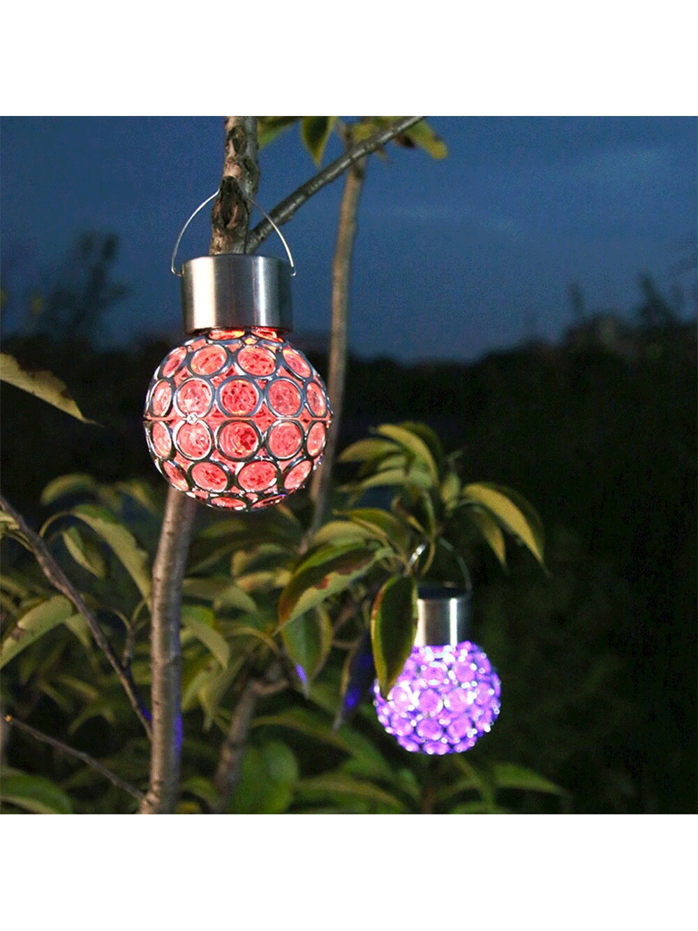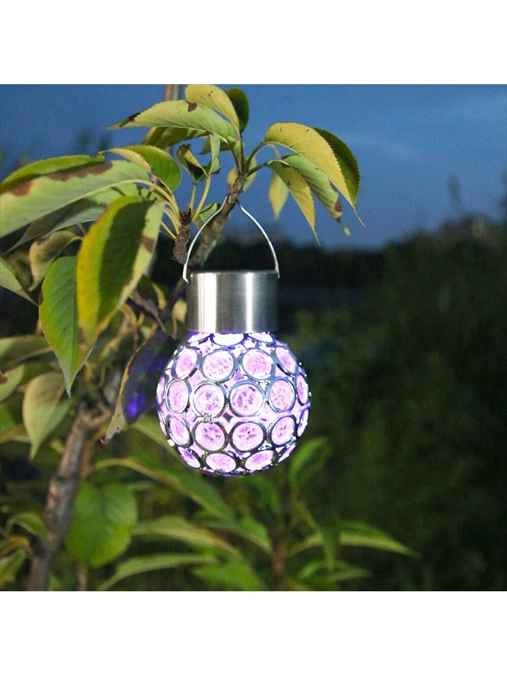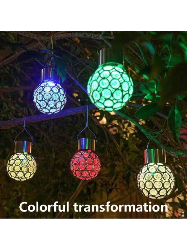 Illuminate your outdoor spaces with this charming solar-powered hanging light. Featuring a unique hollow design, this waterproof LED chandelier offers multicolor lighting that adds a festive and vibrant touch to your garden or lawn. The light control feature automatically turns the lamp on at dusk, providing continuous illumination throughout the night. This hanging light is perfect for creating a beautiful atmosphere in your garden, backyard, or patio, making it a great choice for outdoor parties, events, or as a year-round decorative feature.