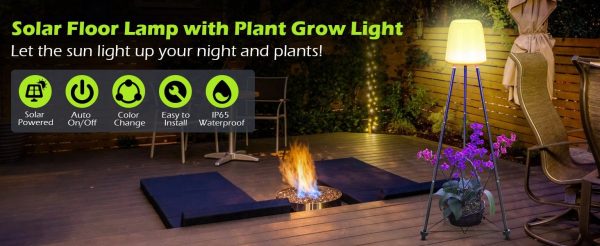 Elevate your outdoor d??cor with this set of two 42.5-inch metal solar floor lamps. Each lamp comes with a built-in plant stand, combining illumination with a stylish spot for your plants. The solar-powered lights are perfect for outdoor use on patios, gardens, decks, or pathways, and are designed to withstand all weather conditions with their waterproof construction. These lamps automatically light up at dusk, providing both aesthetic charm and functionality to your outdoor spaces.