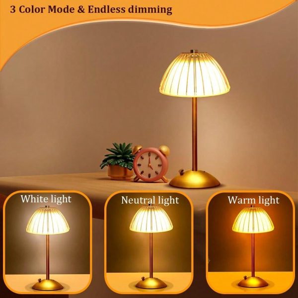 2Pack Portable Crystal LED Table Lamp, 3-Levels Brightness Desk Lamp, 3 Color Touch Control Rechargeable Lamp, Night Light, Bedside Lamp,Dining Room Lamp Gold