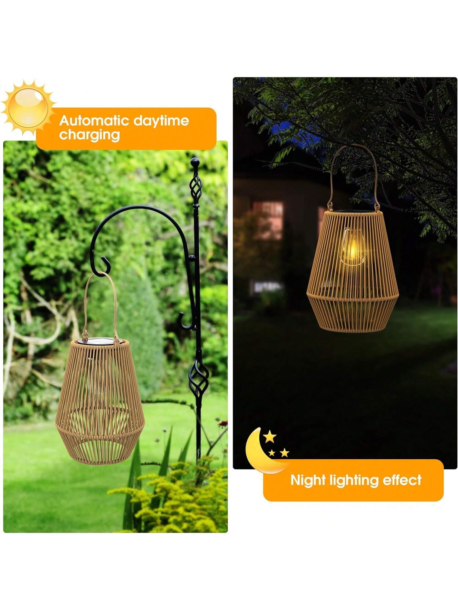 Add a charming glow to your outdoor spaces with these KagoLing solar lanterns. This set of two lanterns features a khaki finish, perfect for hanging from trees, placing on your porch, or lining your garden pathway. The solar-powered lights charge during the day and automatically light up at dusk. With their waterproof design, these lanterns are perfect for all weather conditions, offering both decoration and illumination to enhance your outdoor ambiance.