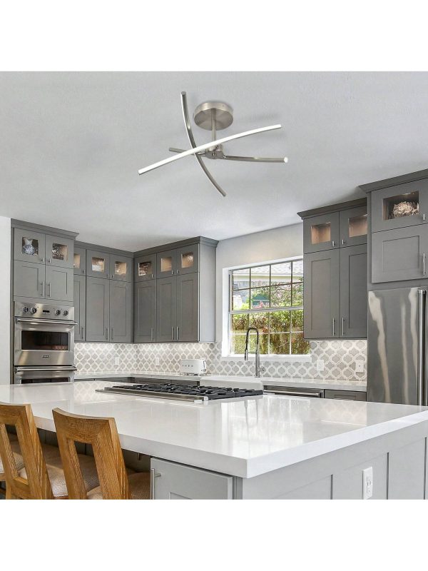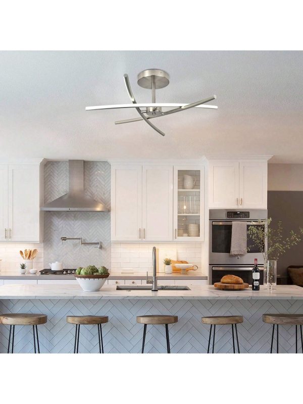 This 3-light brushed nickel ceiling light fixture offers a modern design with a semi-flush mount installation, ideal for illuminating hallways, bedrooms, bathrooms, or kitchens. The silver finish adds a contemporary touch, while the LED lighting ensures bright, energy-efficient illumination. The clean and modern look of this fixture complements various d??cor styles, making it a versatile addition to any room.