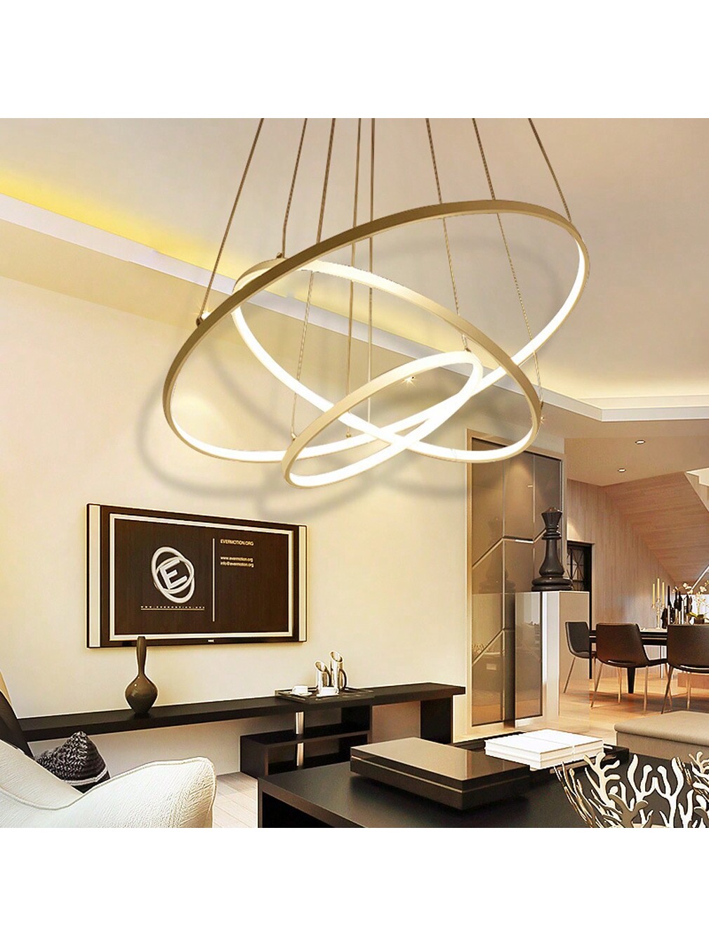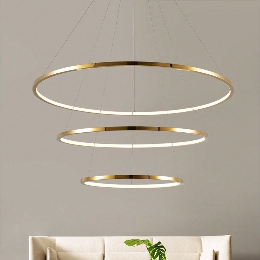 This stunning 3-tiered LED pendant light features a gold finish and is perfect for creating an ambient lighting effect in any modern space. Ideal for dining rooms, living rooms, or kitchens, it provides a warm light that sets the mood for intimate gatherings or relaxing evenings. The tiered design offers visual interest, while the energy-efficient LED technology ensures bright and lasting illumination.
