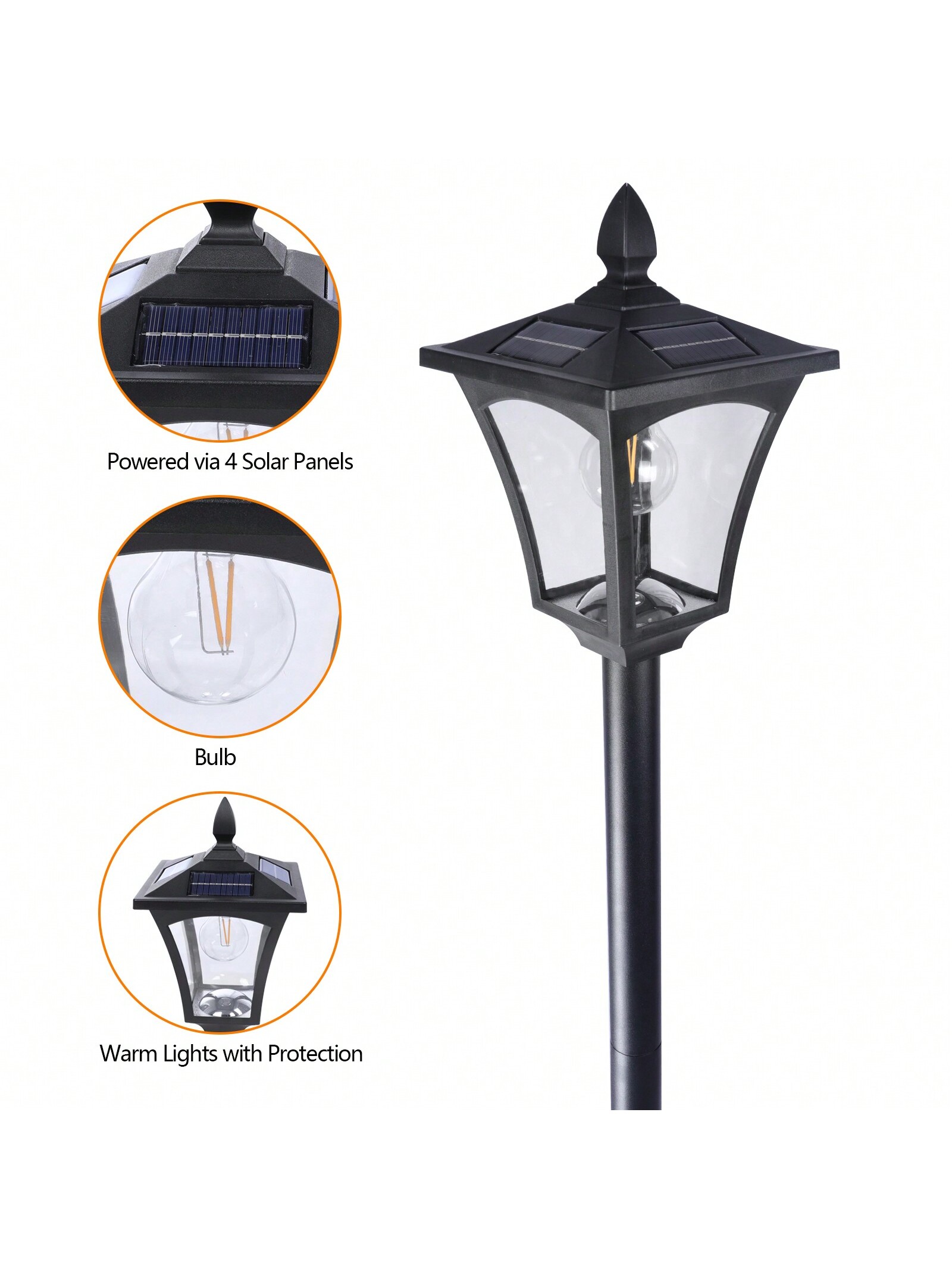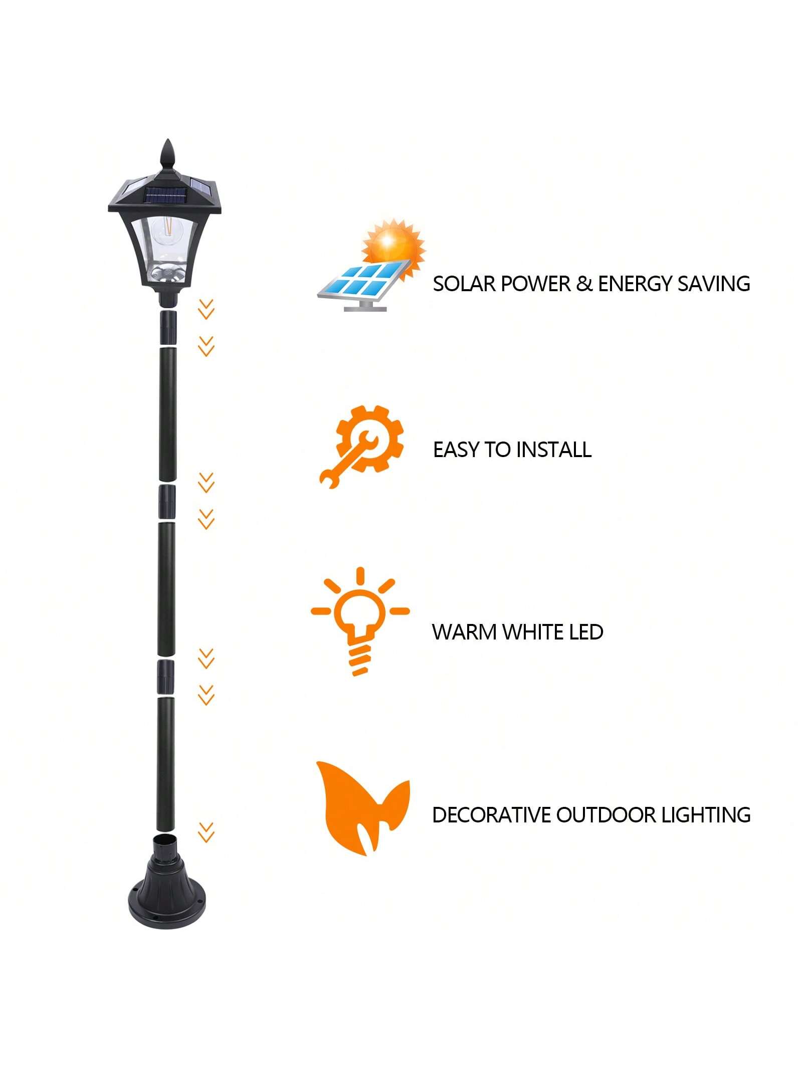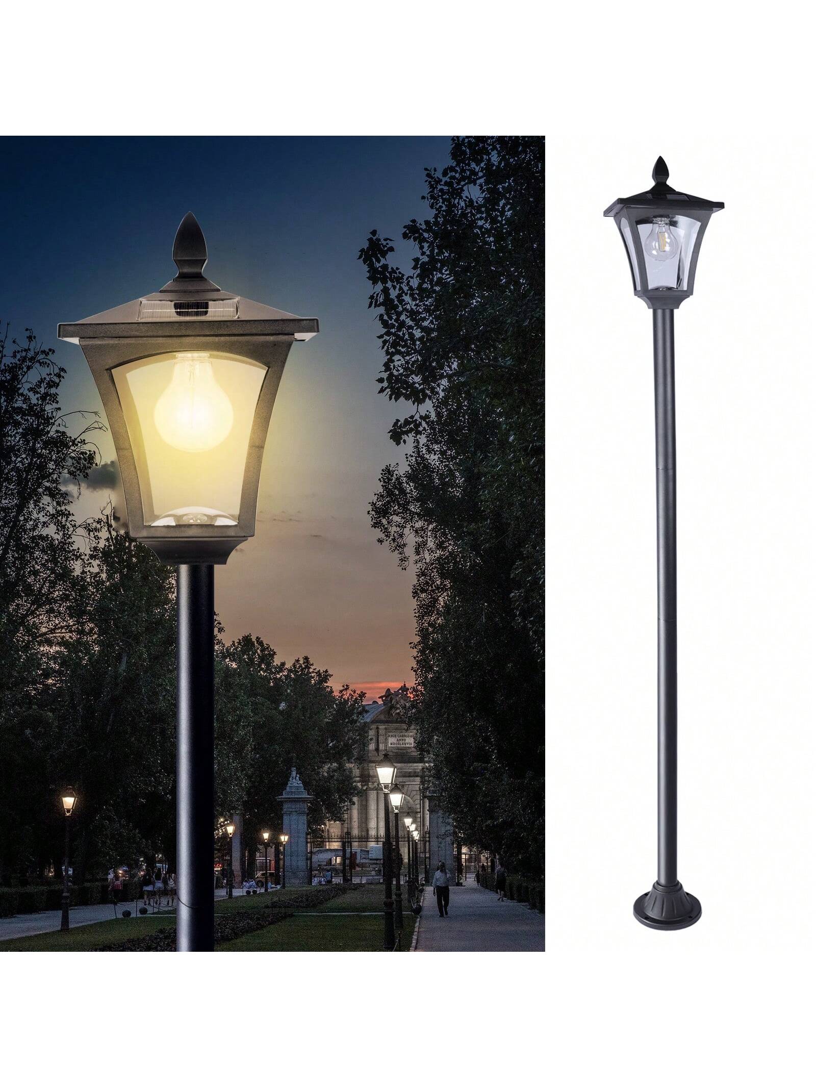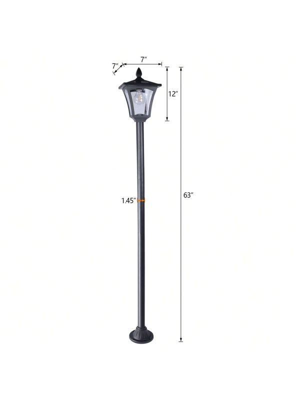 This elegant solar post lamp is a beautiful addition to your garden, driveway, or patio. Standing 63 inches tall, it provides ample illumination without the need for a planter. The waterproof and weather-resistant design ensures durability through all seasons, while the solar-powered feature allows for eco-friendly lighting with no wiring needed. It??s perfect for adding charm and safety to your outdoor areas.
