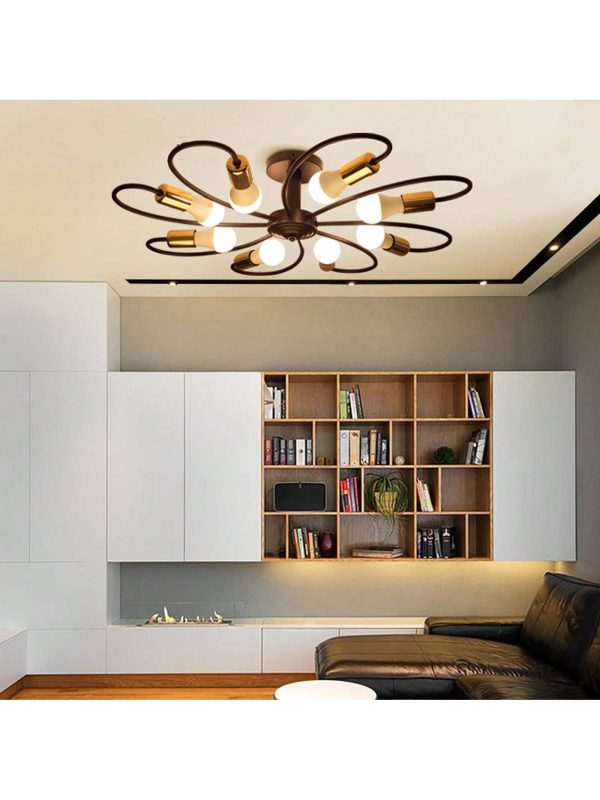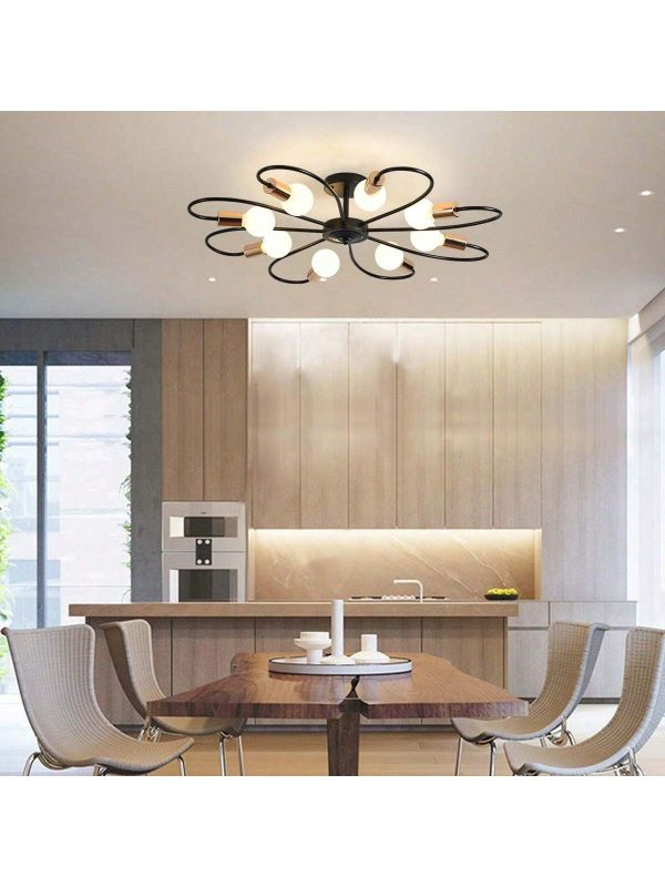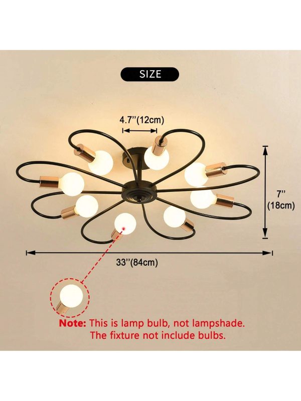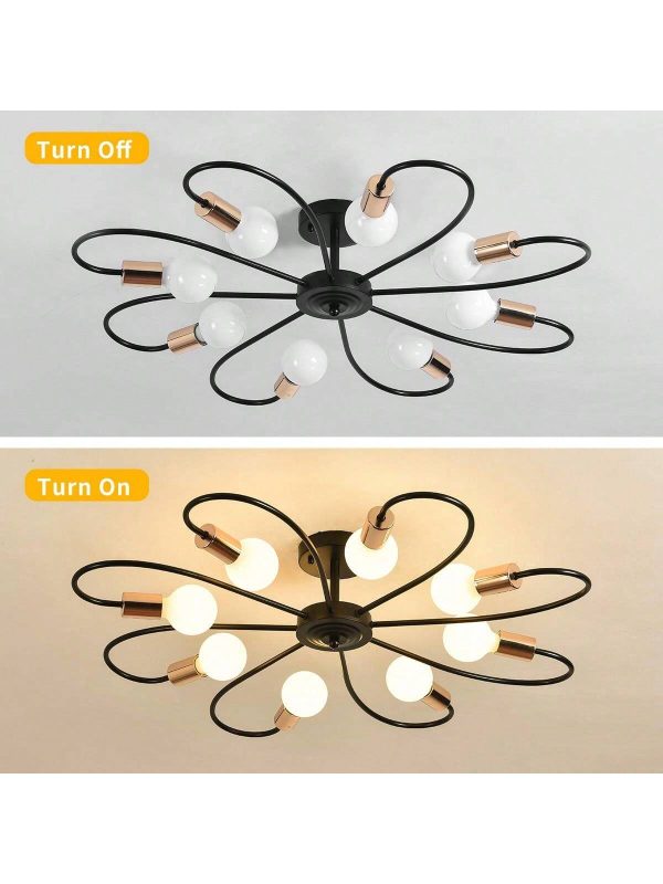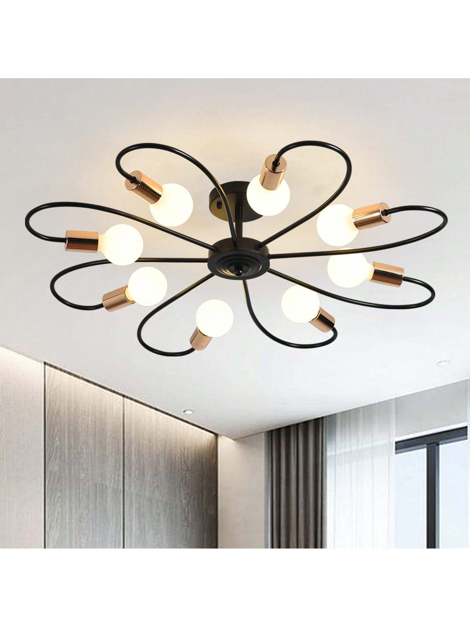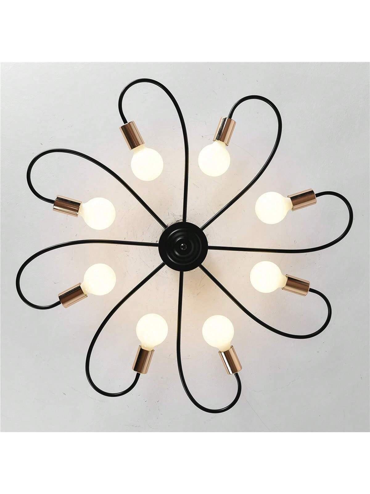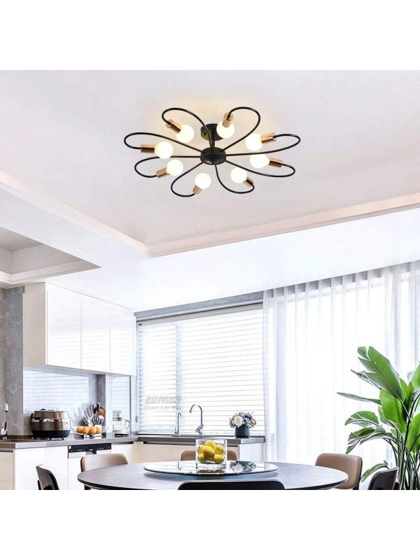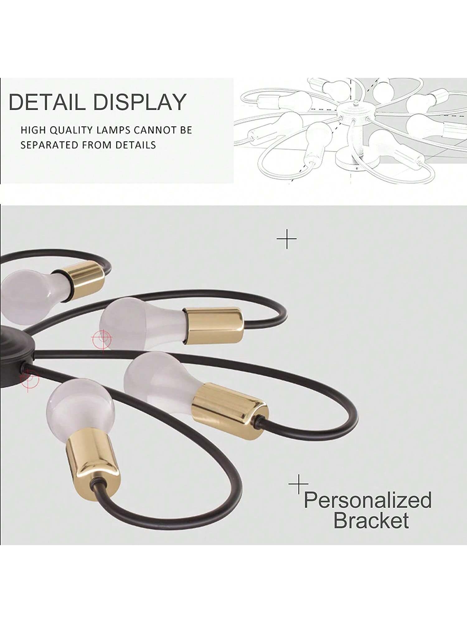 Add a touch of modern elegance to any room with this 8-light semi-flush ceiling light. Featuring a Sputnik chandelier design, this light fixture combines mid-century and industrial vintage elements. The black and gold finish gives it a sophisticated appeal, making it perfect for kitchens, dining rooms, living rooms, or bedrooms. This pendant light provides ample illumination while serving as a statement piece in your home d??cor.