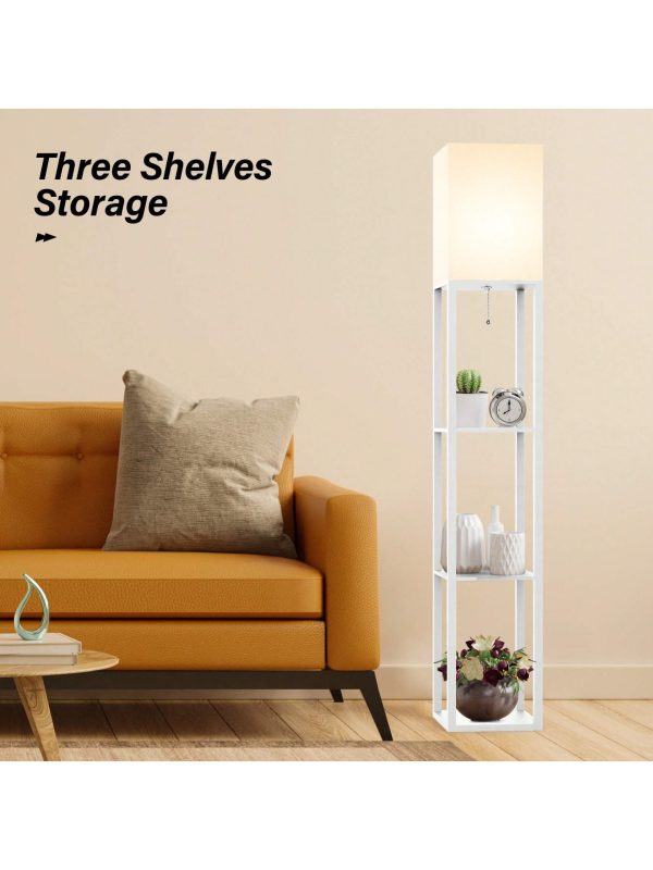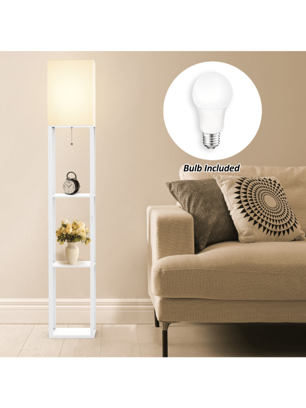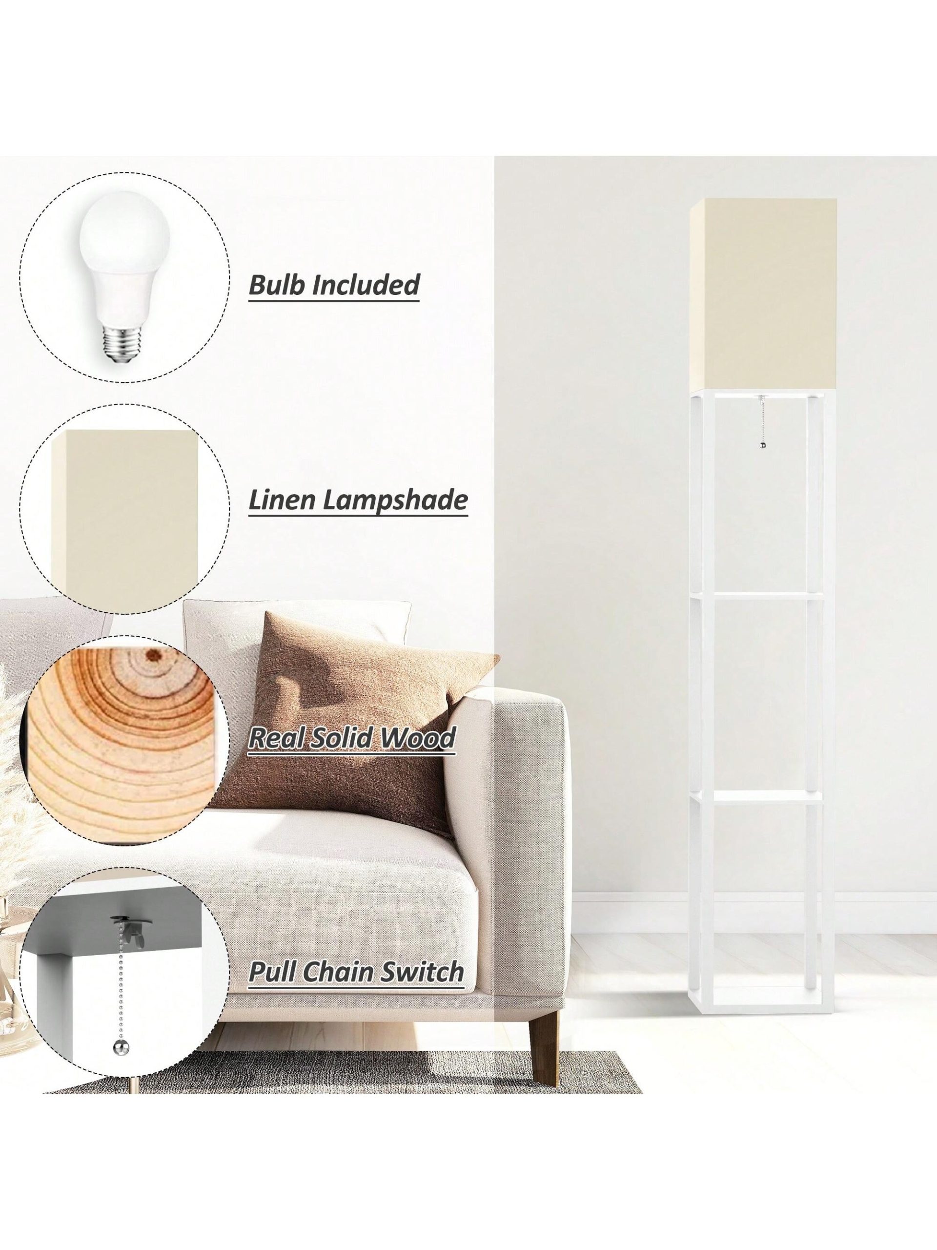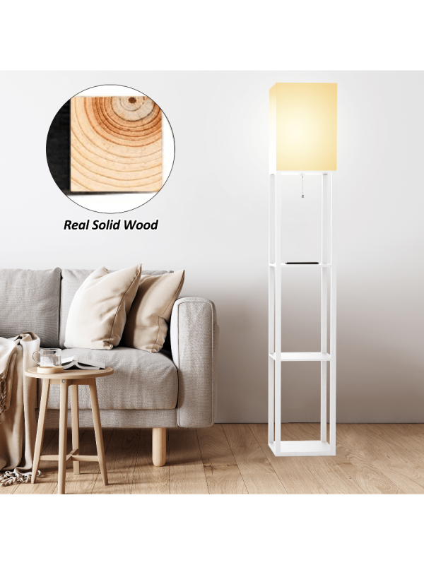 This stylish column floor lamp is a functional piece of home decor that combines lighting and storage. The real solid wood structure provides durability and a natural look, while the white finish adds a clean, contemporary touch. With built-in shelves, this lamp offers additional storage space for books, decor, or other items, making it perfect for small living rooms, bedrooms, or offices. The included bulb ensures you can enjoy instant lighting upon setup. Whether used as a functional light source or a decorative piece, this lamp provides both beauty and utility.