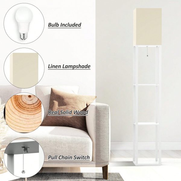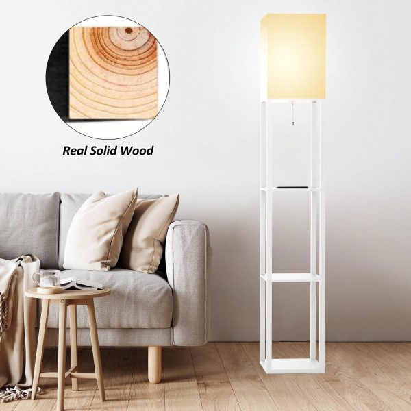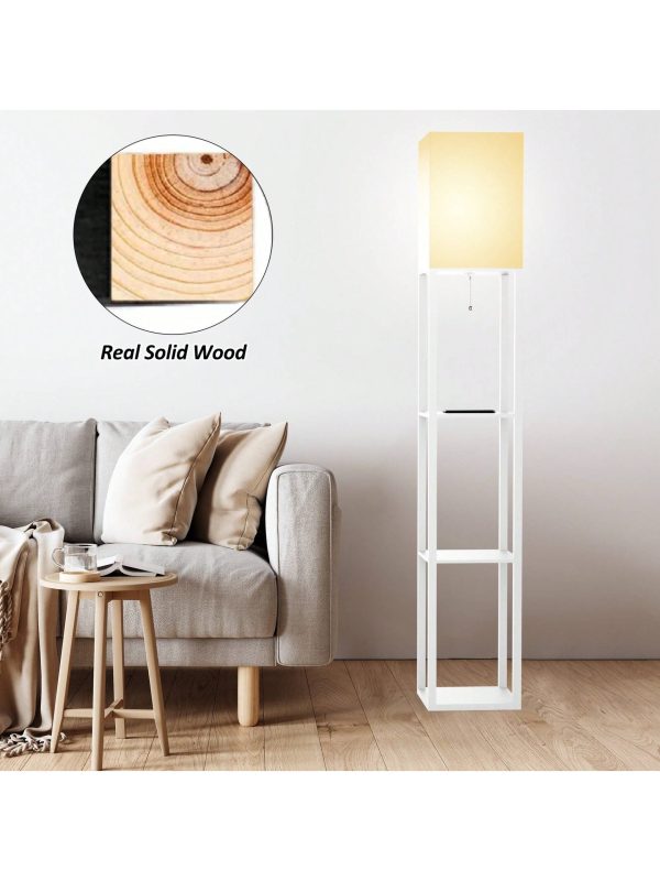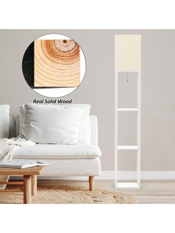 Column Floor Lamp With Shelves, Real Solid Wood And Bulb Included White