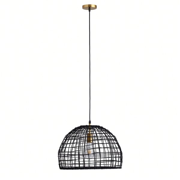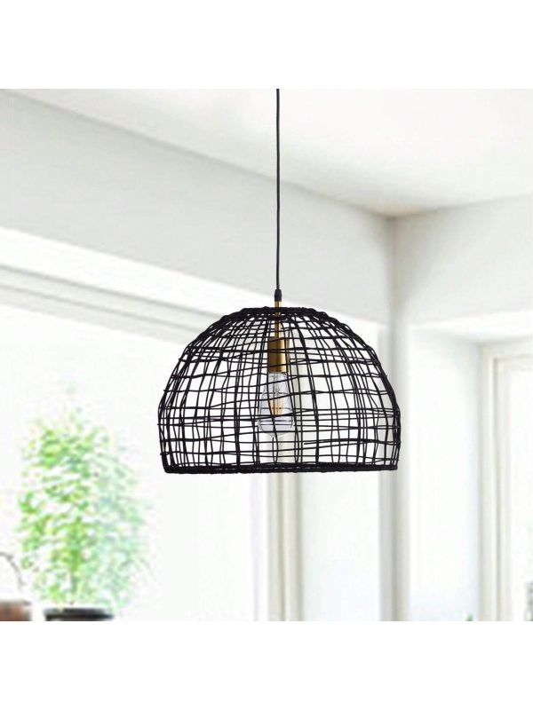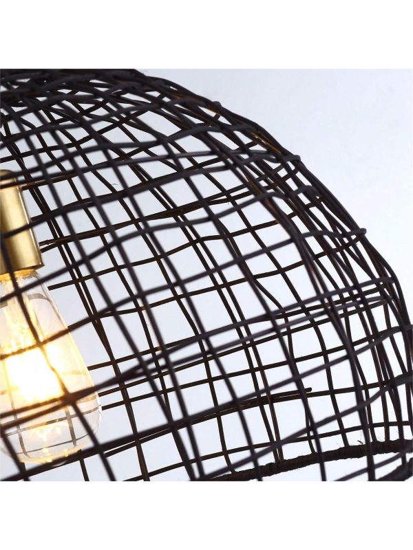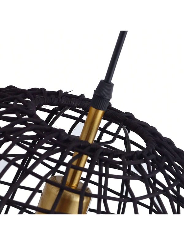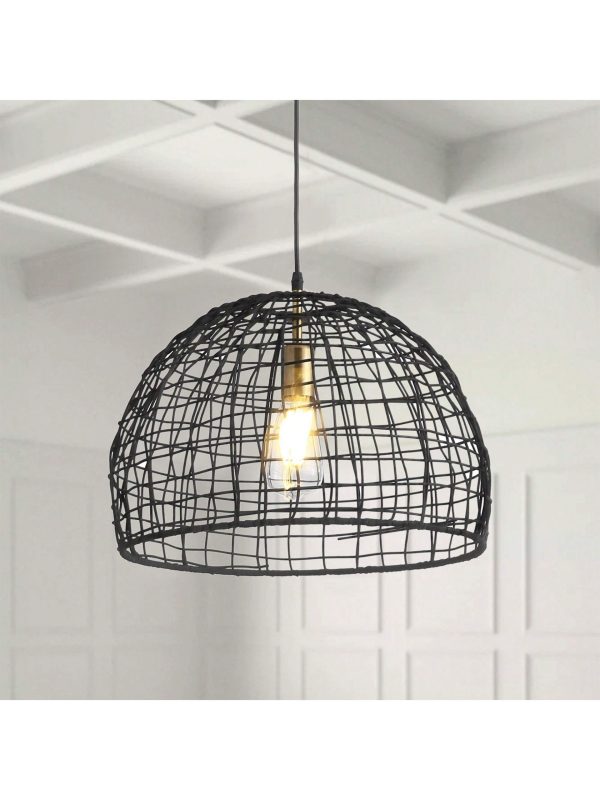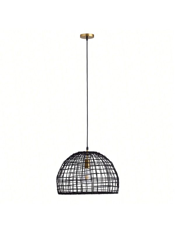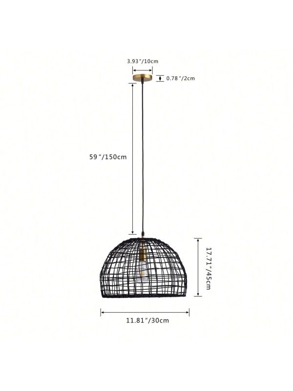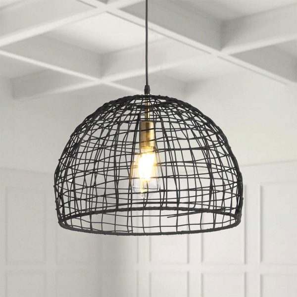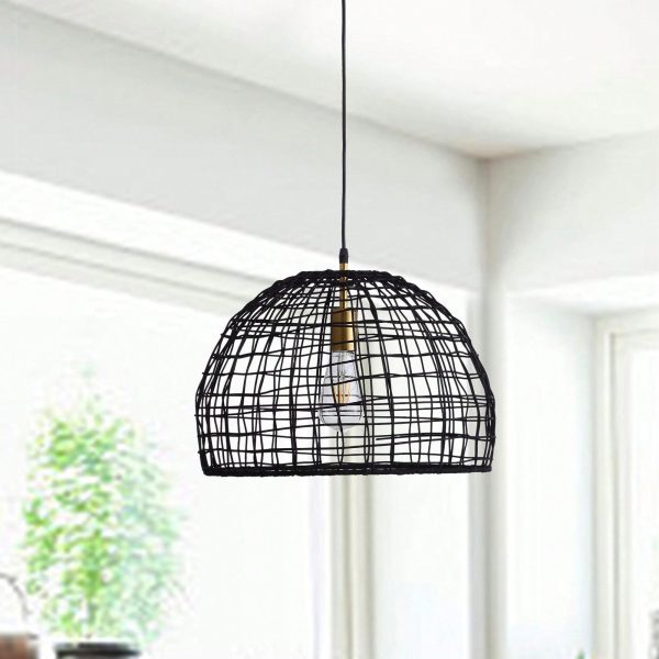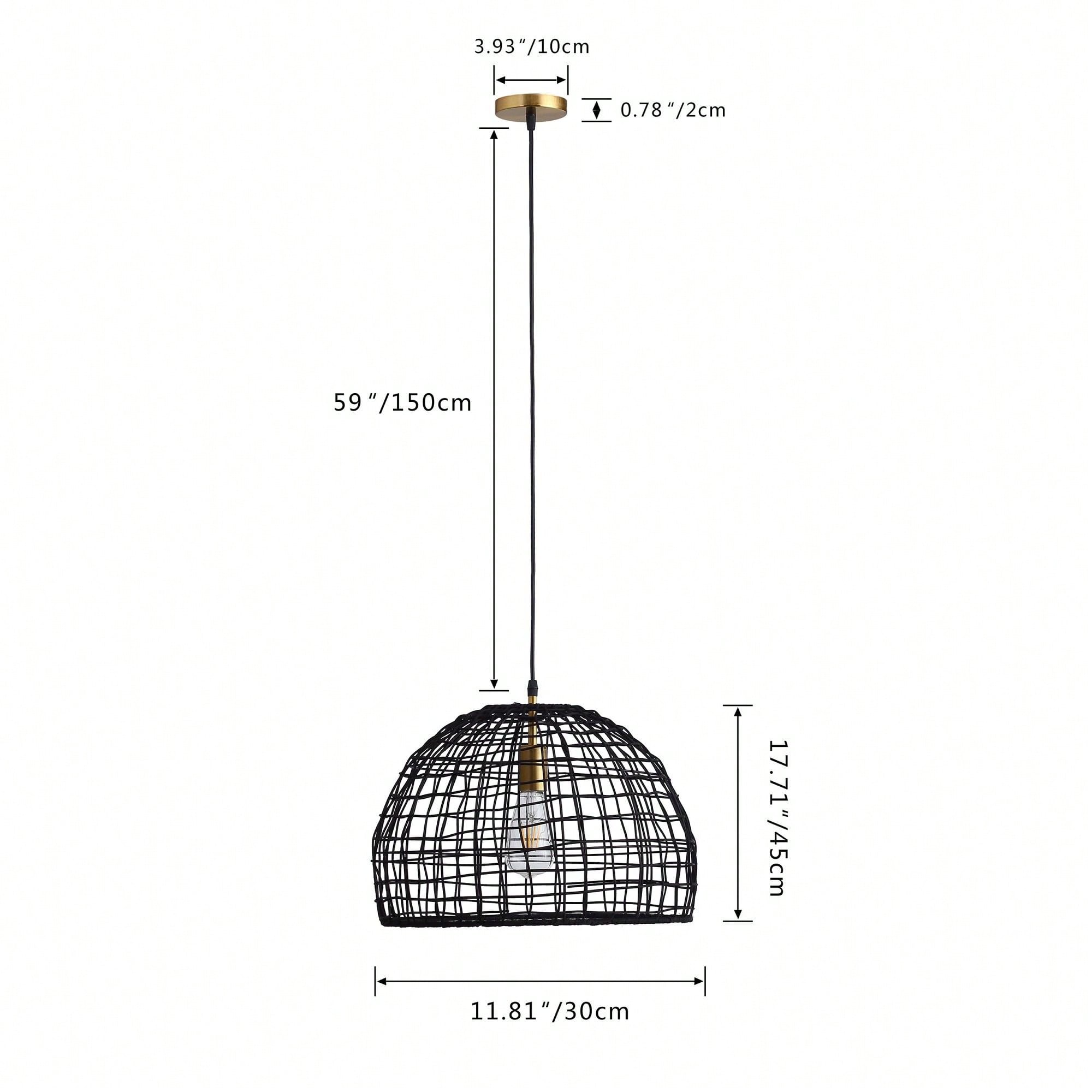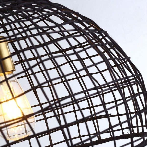 Creative Modern Rattan Pendant Light Dome Lampshade Natural Hanging Ceiling Lamp Black