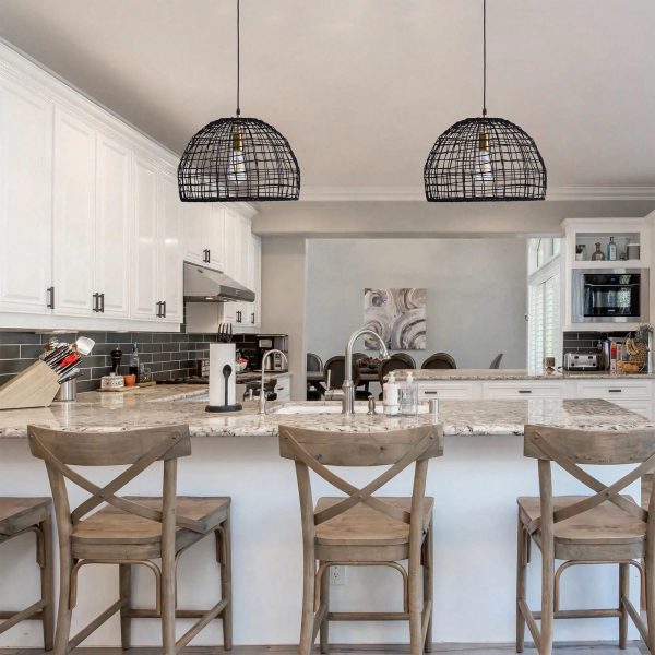 This creative rattan pendant light brings a touch of nature into your home with its dome-shaped lampshade. The natural rattan material creates a warm, inviting atmosphere, making it perfect for kitchens, dining rooms, or living spaces. The black finish on the pendant adds a modern twist, while the natural design complements both contemporary and rustic […]