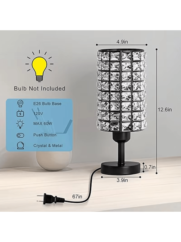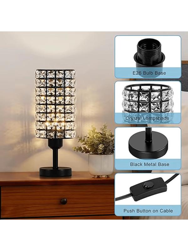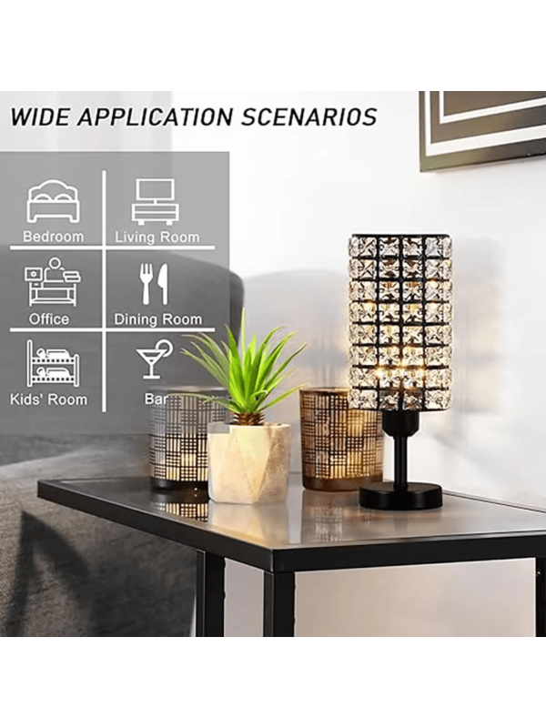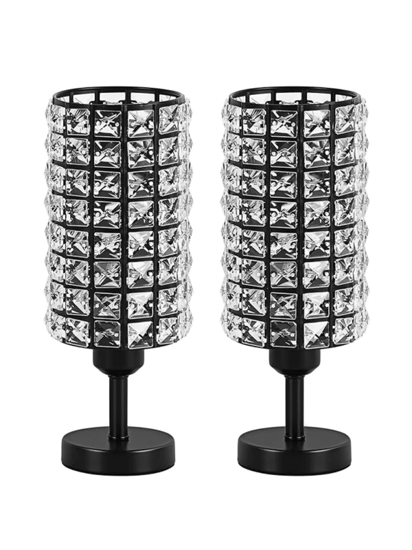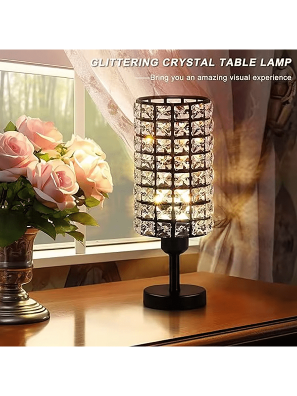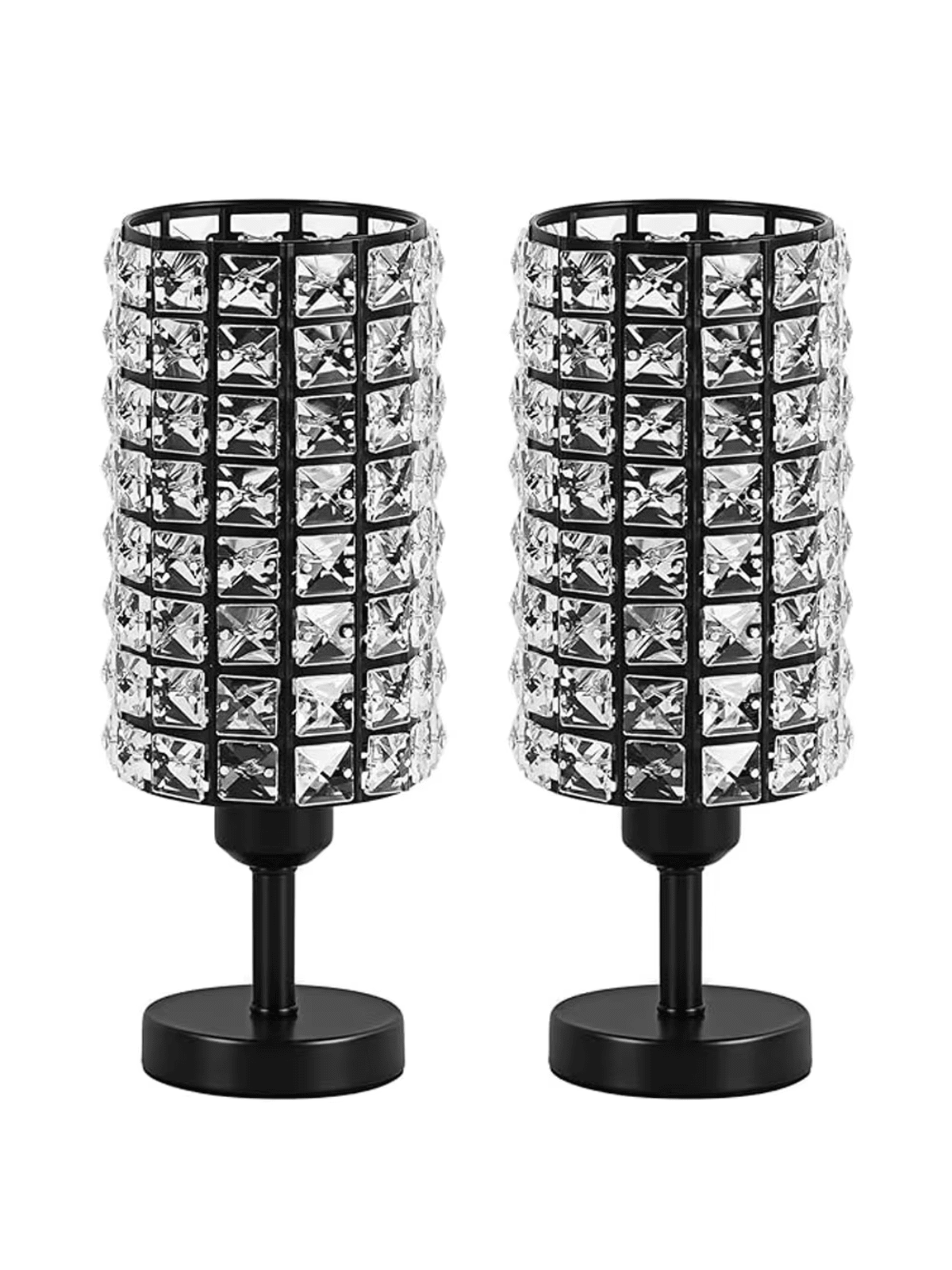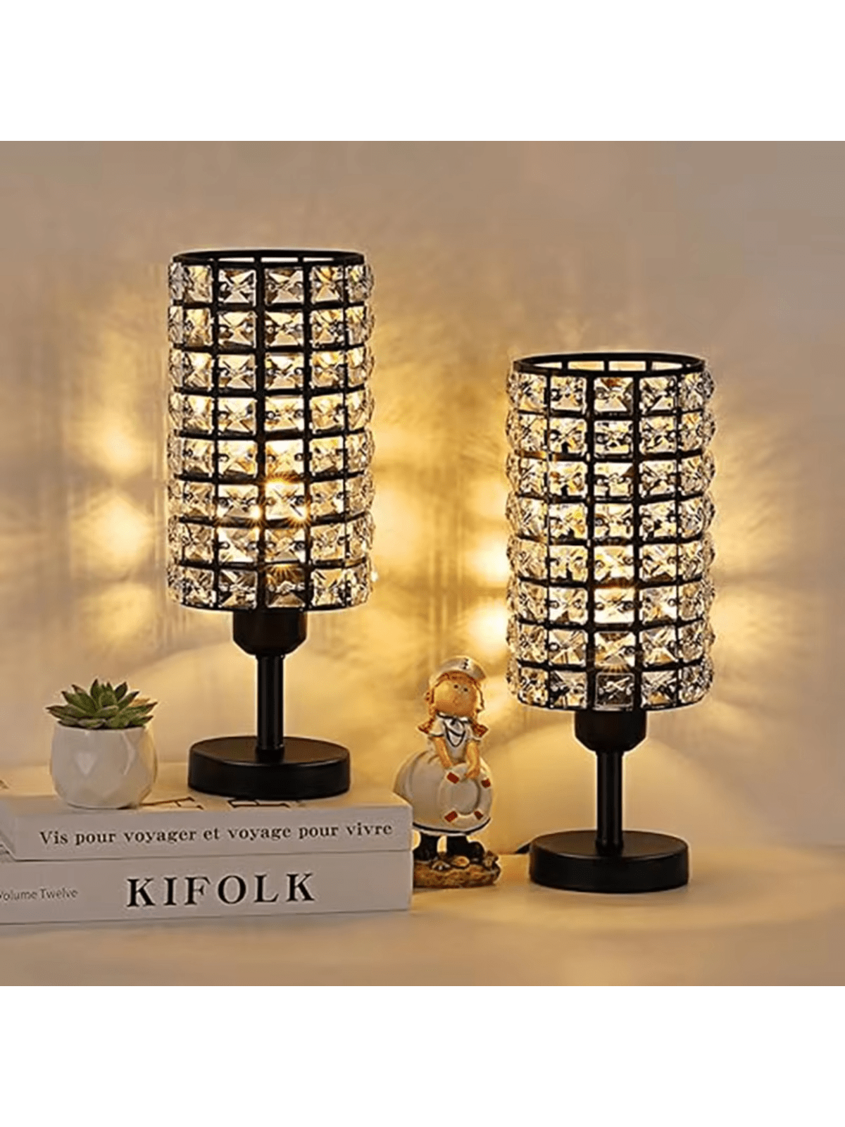 This elegant set of two crystal table lamps is designed to add a touch of sophistication to your home decor. Perfect for your bedroom, living room, or office, the sleek black finish and crystal detailing create a modern, luxurious ambiance. The small, yet powerful design is ideal for nightstands or as decorative accent lighting on desks or side tables. These lamps not only offer functionality with their gentle, ambient lighting but also serve as chic statement pieces. The compact size makes them versatile enough to fit in any room without overwhelming the space, while the elegant design enhances the overall aesthetic of your decor.
