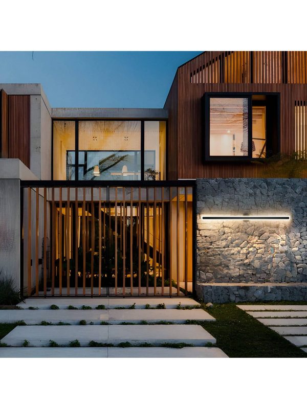 This minimalist LED wall sconce provides a sleek, modern solution for your outdoor lighting needs. Featuring a linear design, this outdoor fixture is perfect for porches, balconies, or landscape lighting. The black finish enhances any exterior decor, offering both a stylish and practical lighting solution. Ideal for creating a contemporary ambiance, it uses LED technology for energy-efficient illumination and long-lasting performance.