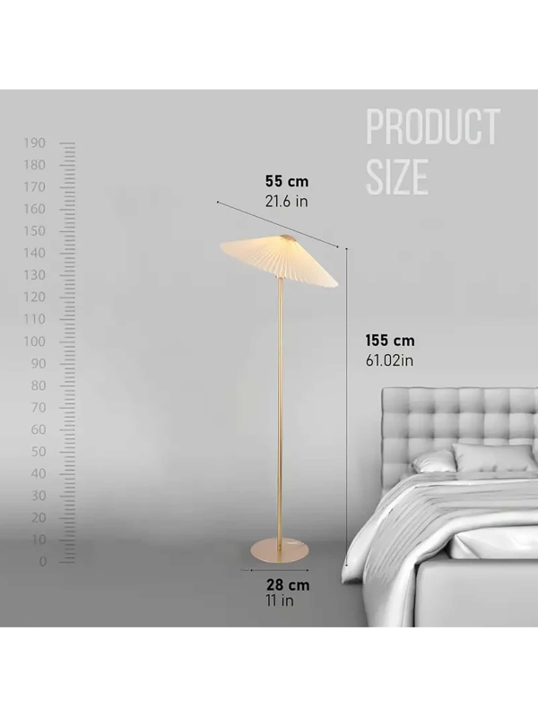 Add a touch of elegance to your living space with this KUNJOULAM pleated floor lamp. Featuring a stylish gold pole and a soft beige lampshade, it blends classic design with a contemporary twist. The tall, standing lamp is perfect for living rooms, bedrooms, or offices, offering gentle, ambient lighting that complements any decor. The pleated lampshade diffuses light softly, creating a cozy atmosphere. With its simple yet sophisticated design, this lamp serves as both a functional light source and a statement piece for your home.