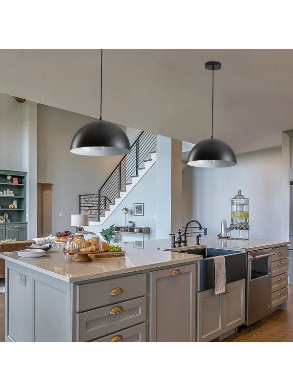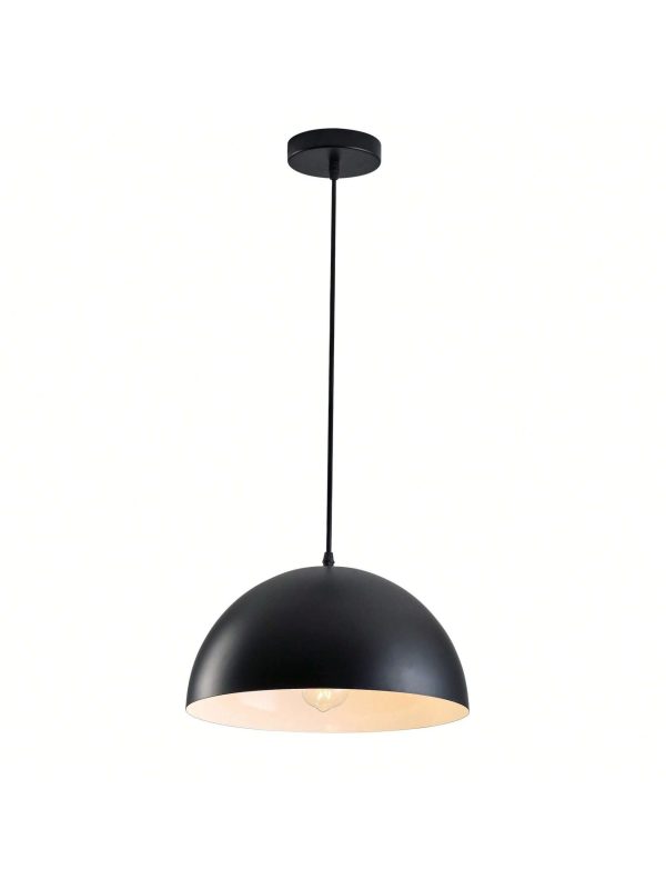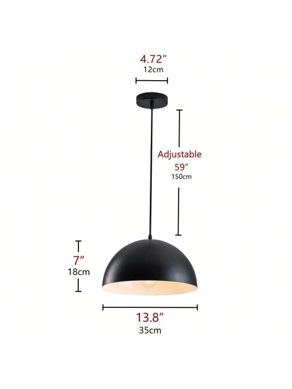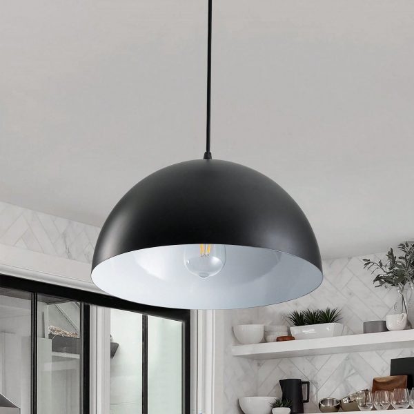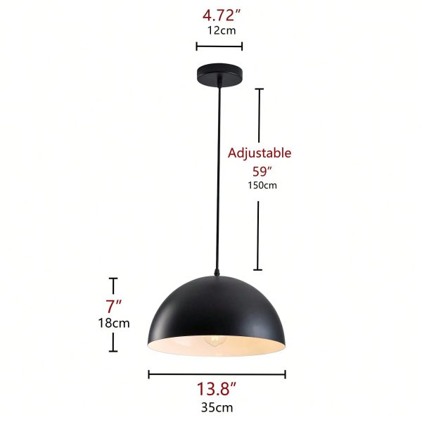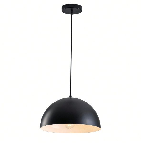 Matte Black Pendant Light Dome Shade Classic Hanging Ceiling Lamp With Metal Shade Black