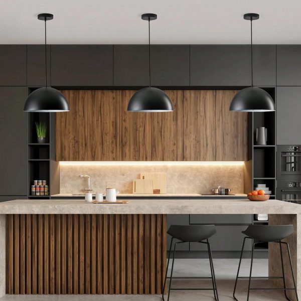 This matte black pendant light features a classic dome-shaped metal shade, perfect for adding a touch of sophistication to any room. Ideal for kitchens, dining rooms, or over a bar area, this pendant light provides focused illumination and a bold design. The black finish offers a sleek, modern aesthetic, making it a versatile and timeless […]