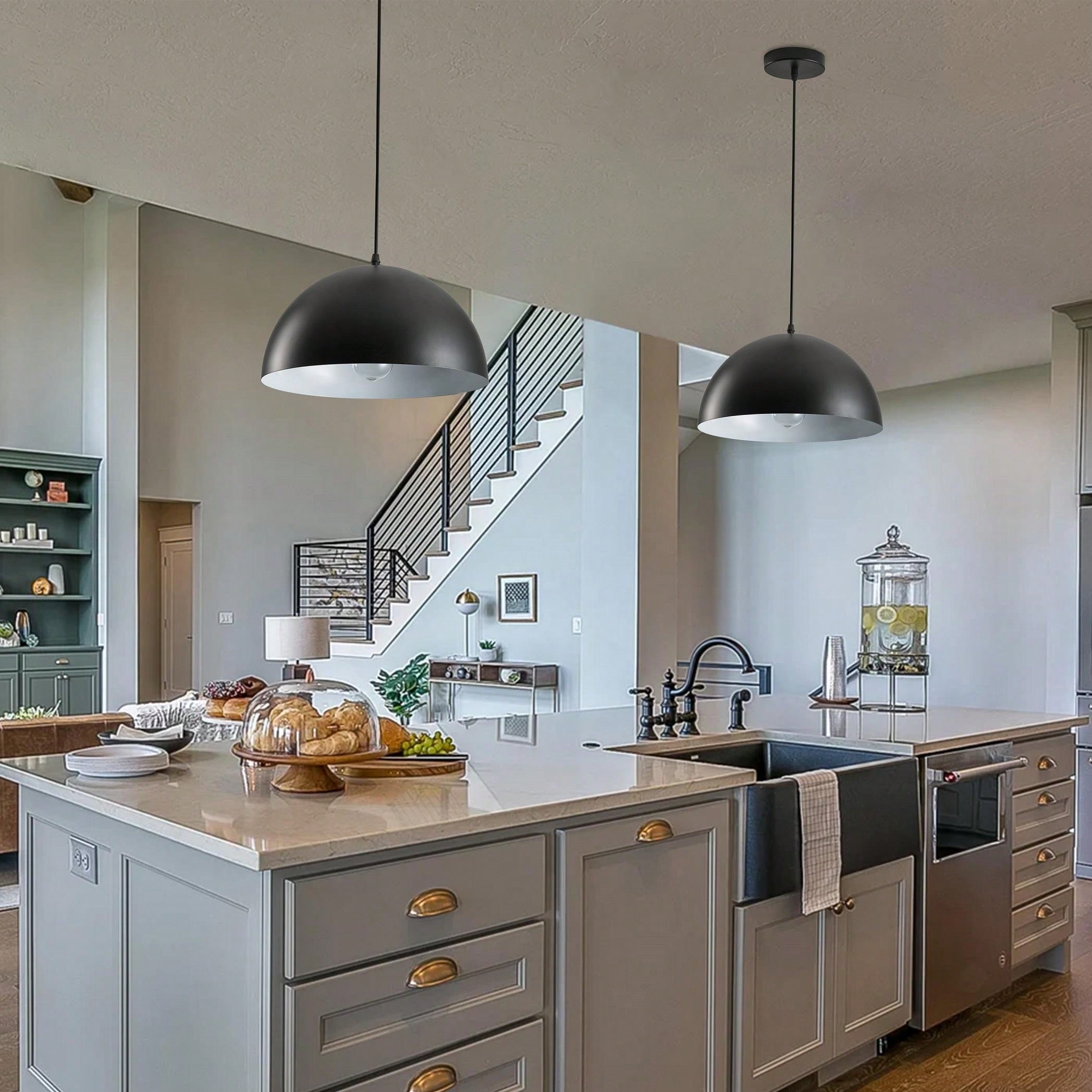 This matte black pendant light features a classic dome-shaped metal shade, perfect for adding a touch of sophistication to any room. Ideal for kitchens, dining rooms, or over a bar area, this pendant light provides focused illumination and a bold design. The black finish offers a sleek, modern aesthetic, making it a versatile and timeless piece for contemporary interiors.