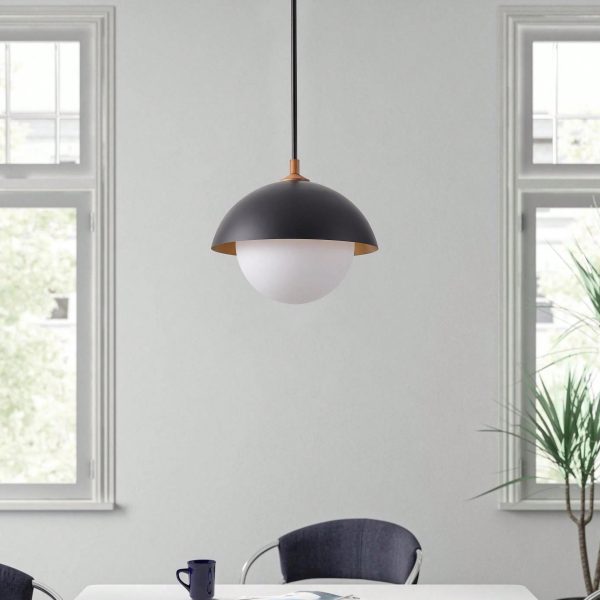 This stylish pendant light features a sleek black metal bowl shade that adds a modern touch to any space. Designed with an E26 base, it offers versatility in choosing the right bulb (bulb not included). Ideal for kitchens, dining rooms, or living areas, this lamp provides focused lighting while complementing a variety of interior styles. The clean, minimalist design enhances modern and industrial d??cor, making it a great addition to your home.