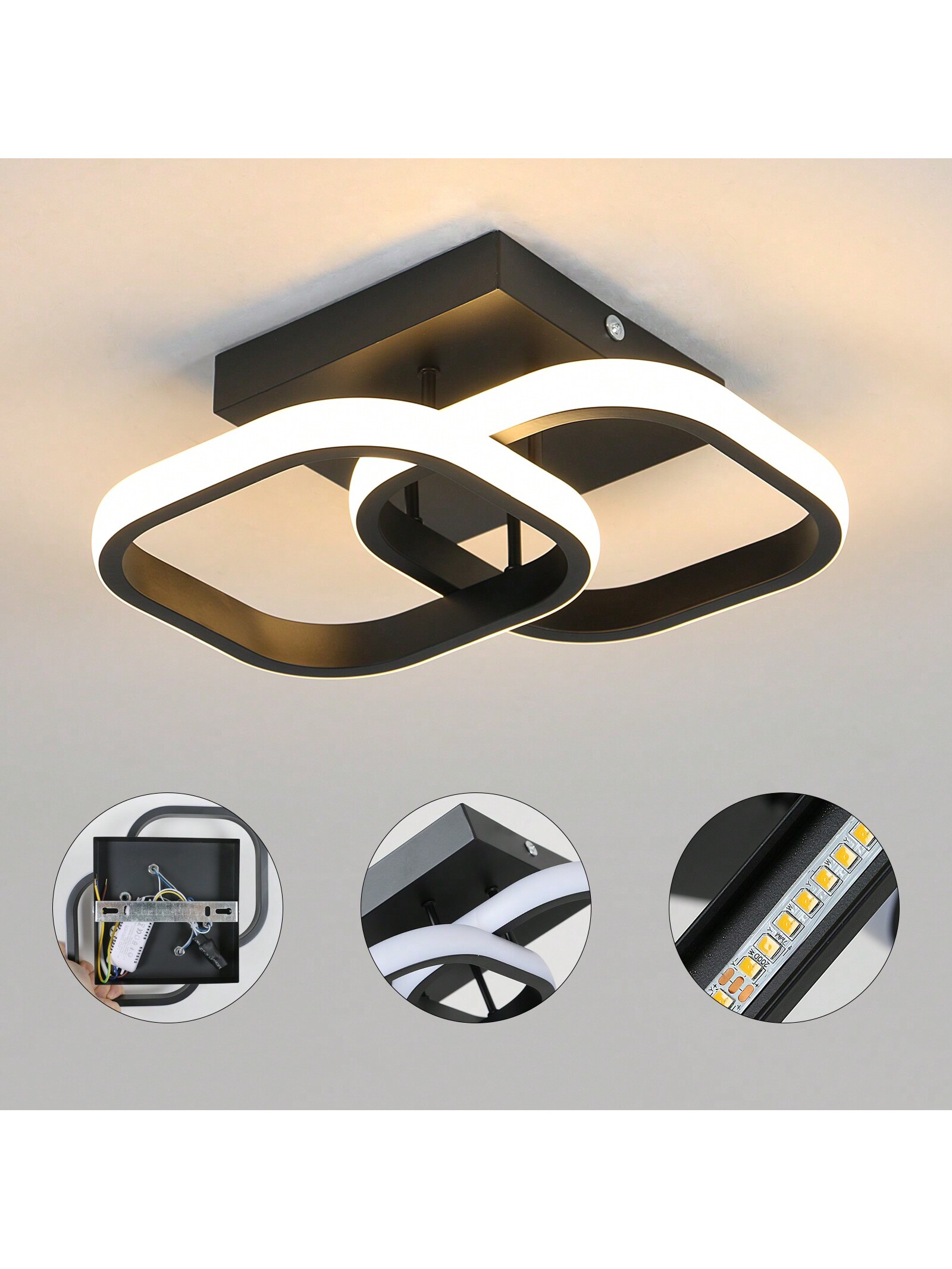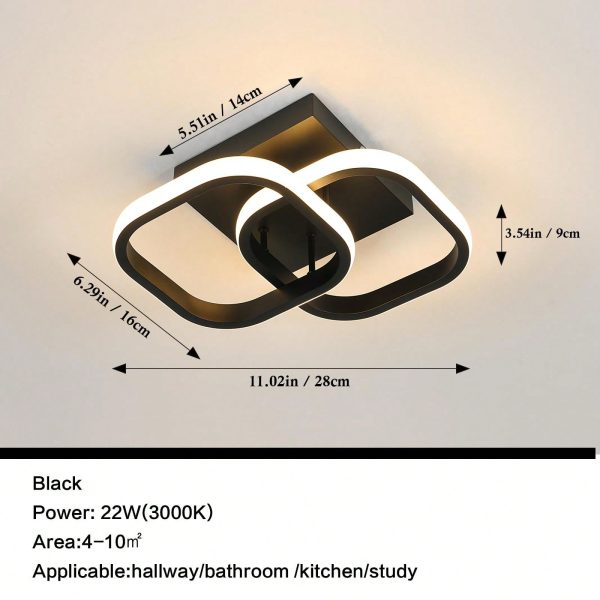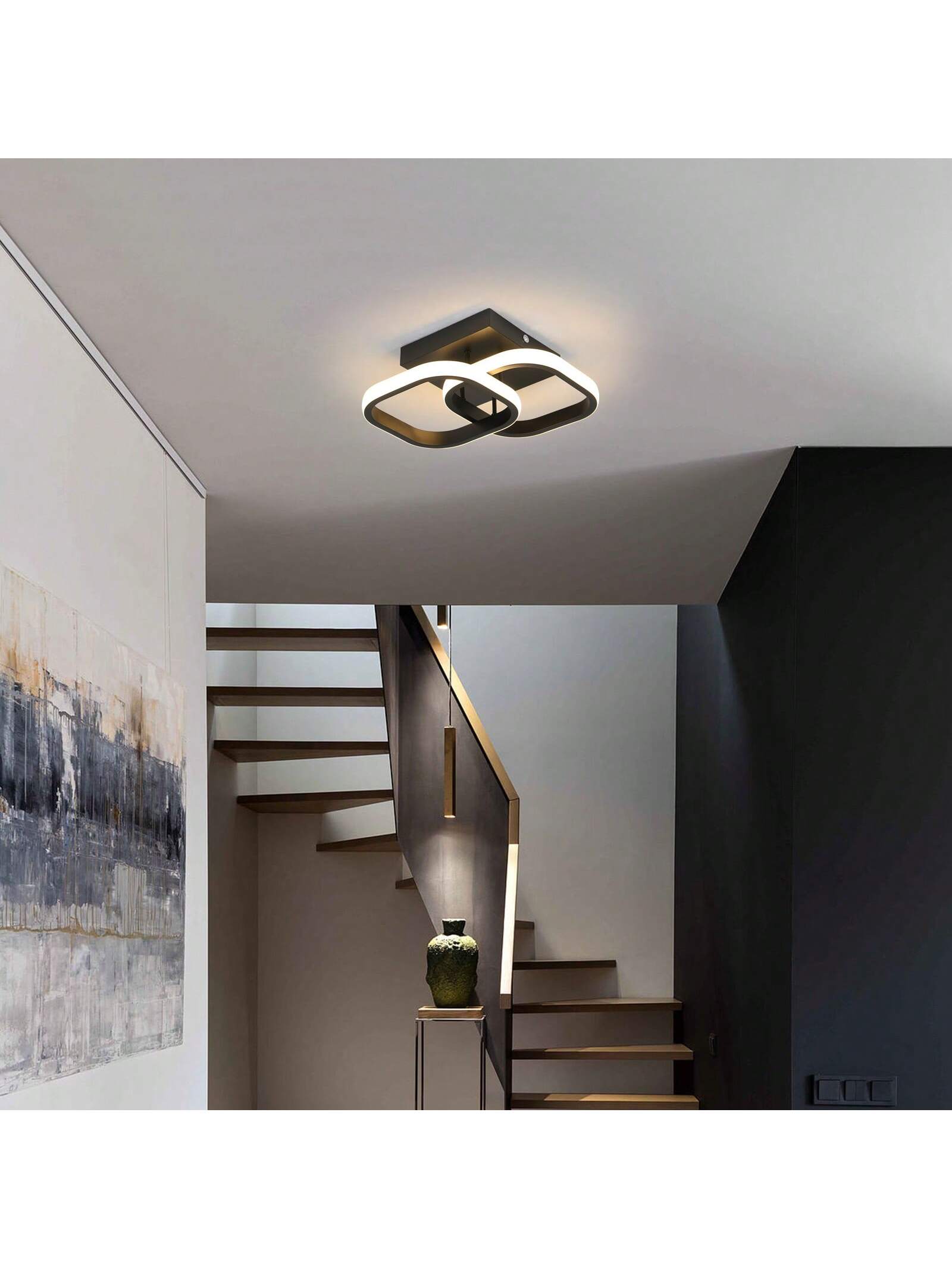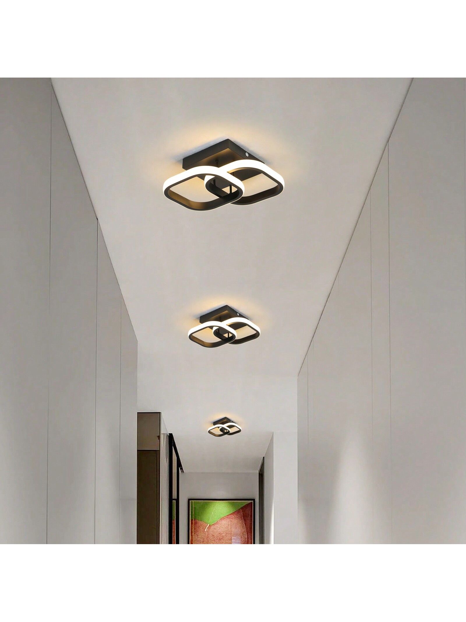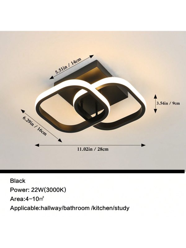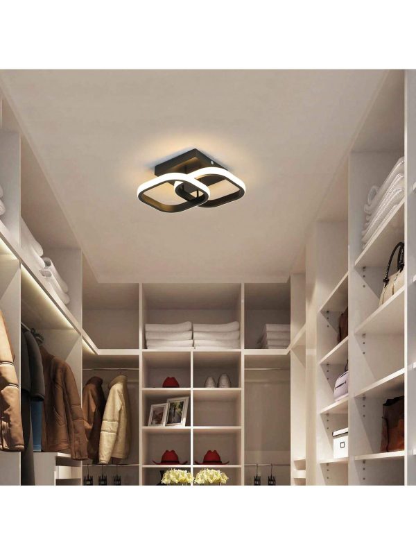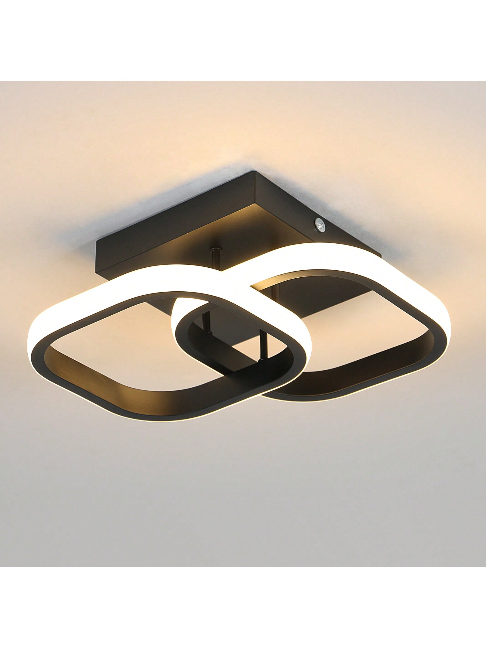 Modern Double Square Shape Ceiling Lamp, Scandinavian Creative Crossover Ceiling Lamp For Corridor, Entrance, Balcony, Bedroom, Living Room Black