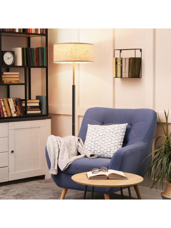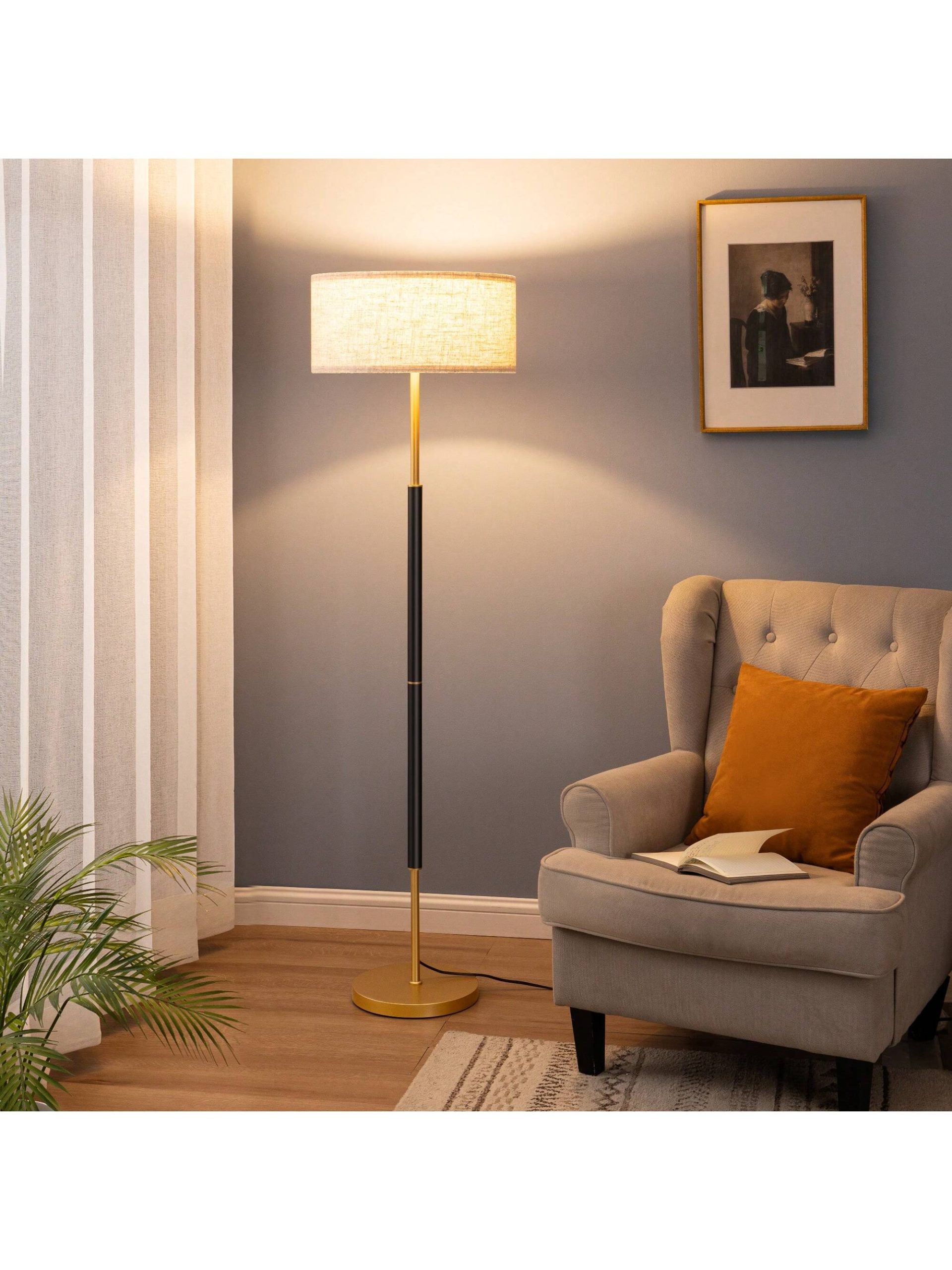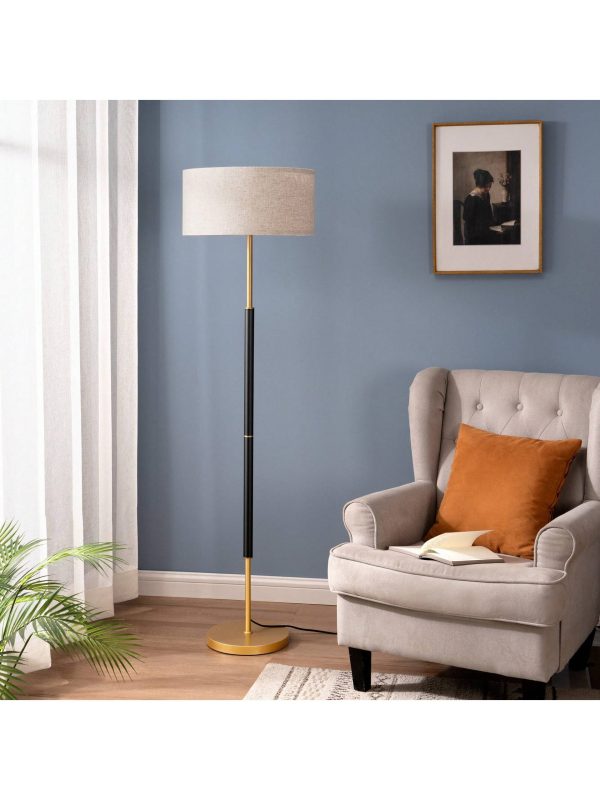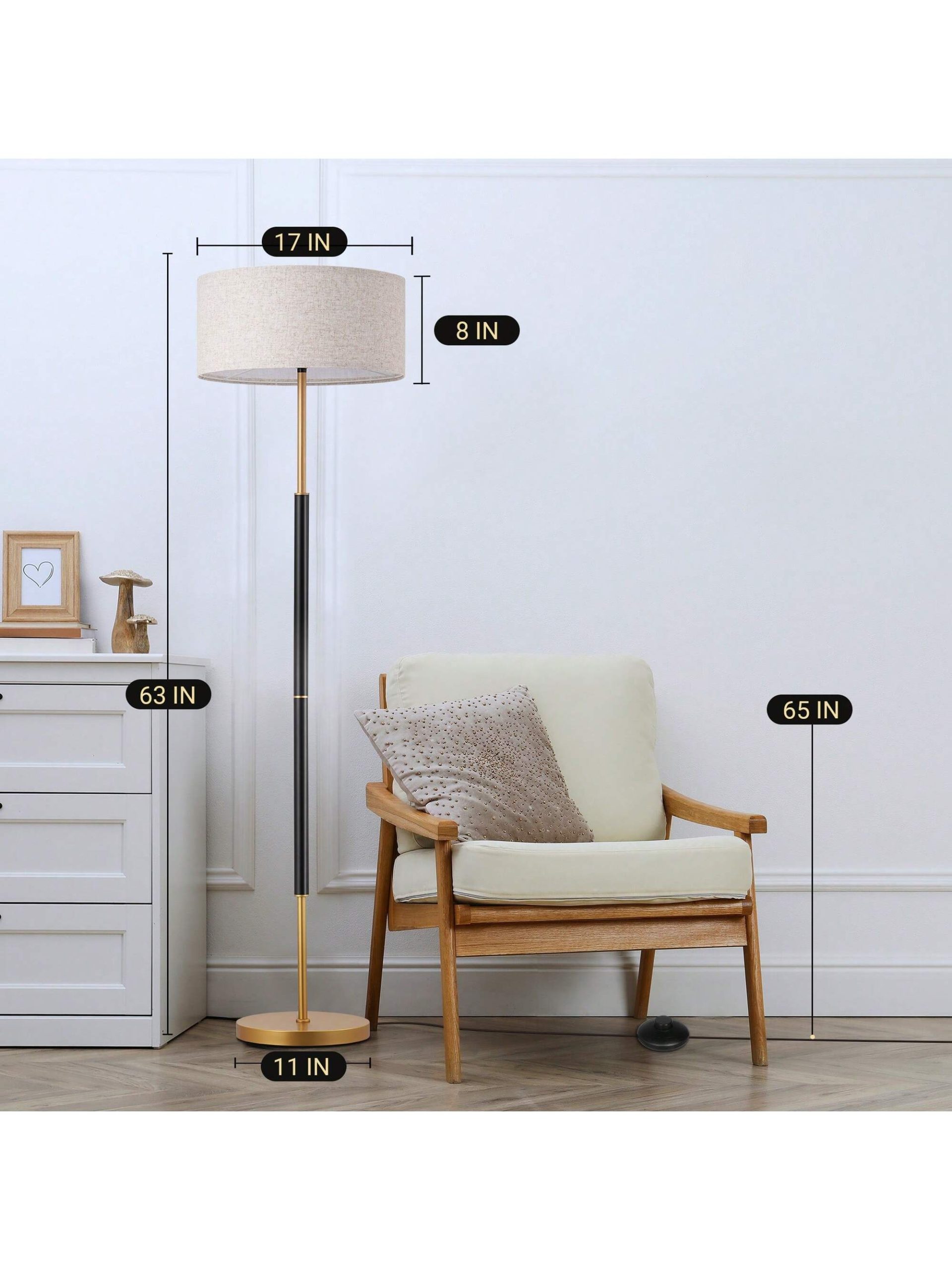 Modern Floor Lamp Linen Lamp Shade Standing Lamp For Living Room Golden And Black 63 Inch Height Black+Golden