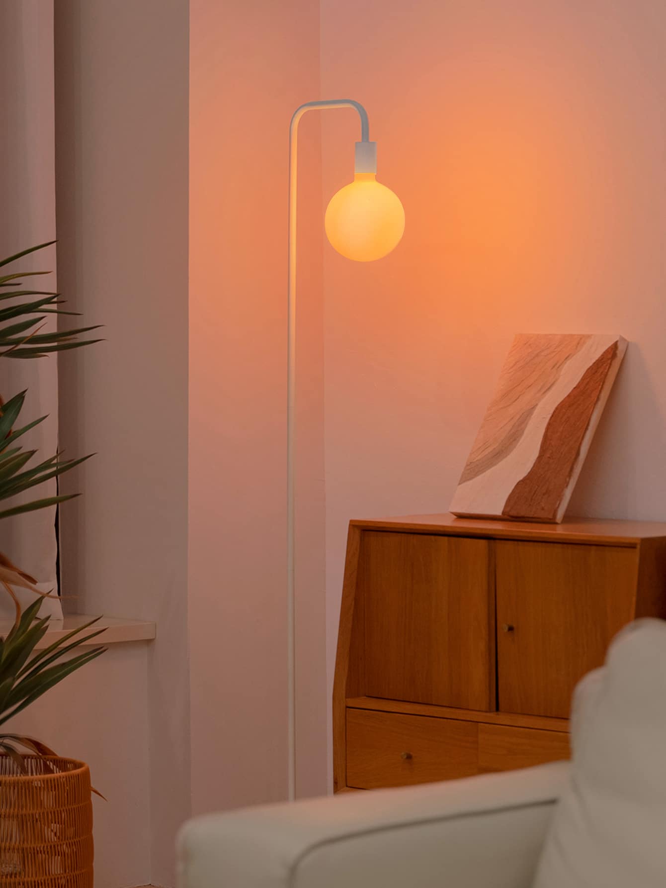 This elegant floor lamp from ONEWISH combines minimalist design with functionality, featuring a 6″ white frosted globe glass shade that emits a soft 1800K warm ambient light. Perfect for the living room, bedroom, or dorm, this tall standing lamp adds a decorative touch while providing gentle illumination. The modern LED bulb is energy-efficient, making it ideal for creating a cozy atmosphere without consuming excess energy. The white finish of the lamp complements contemporary and minimalist decor, enhancing any space with its stylish simplicity. Whether you’re reading, relaxing, or simply adding a touch of elegance, this lamp offers both beauty and practicality.