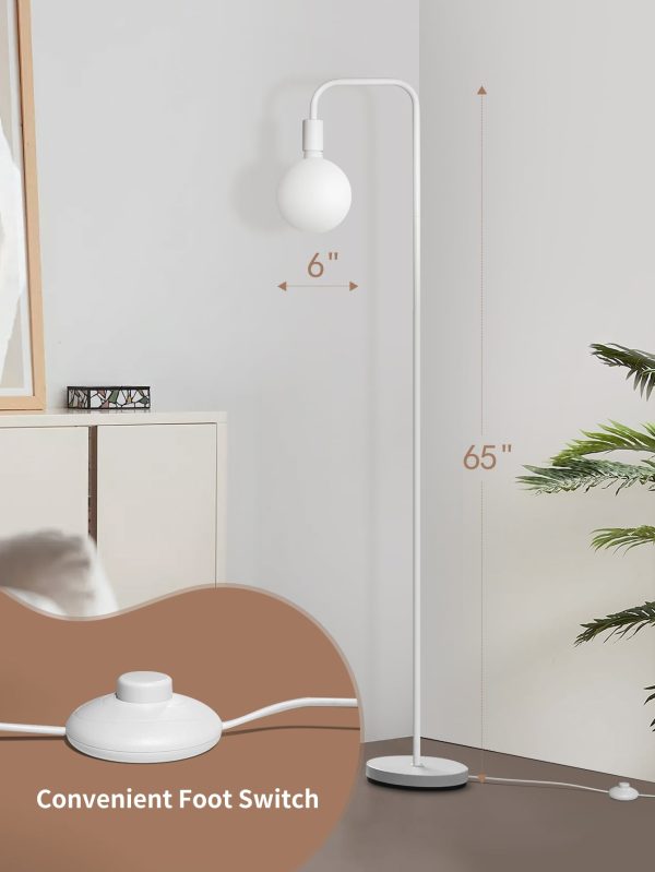 ONEWISH Floor Lamp for Living Room – Minimalist Standing Lamp with Modern LED Bulb, White Frosted Globe Glass 6″, 1800K Warm Ambiant Lighting Decorative Tall Lamp for Bedroom Dorm White