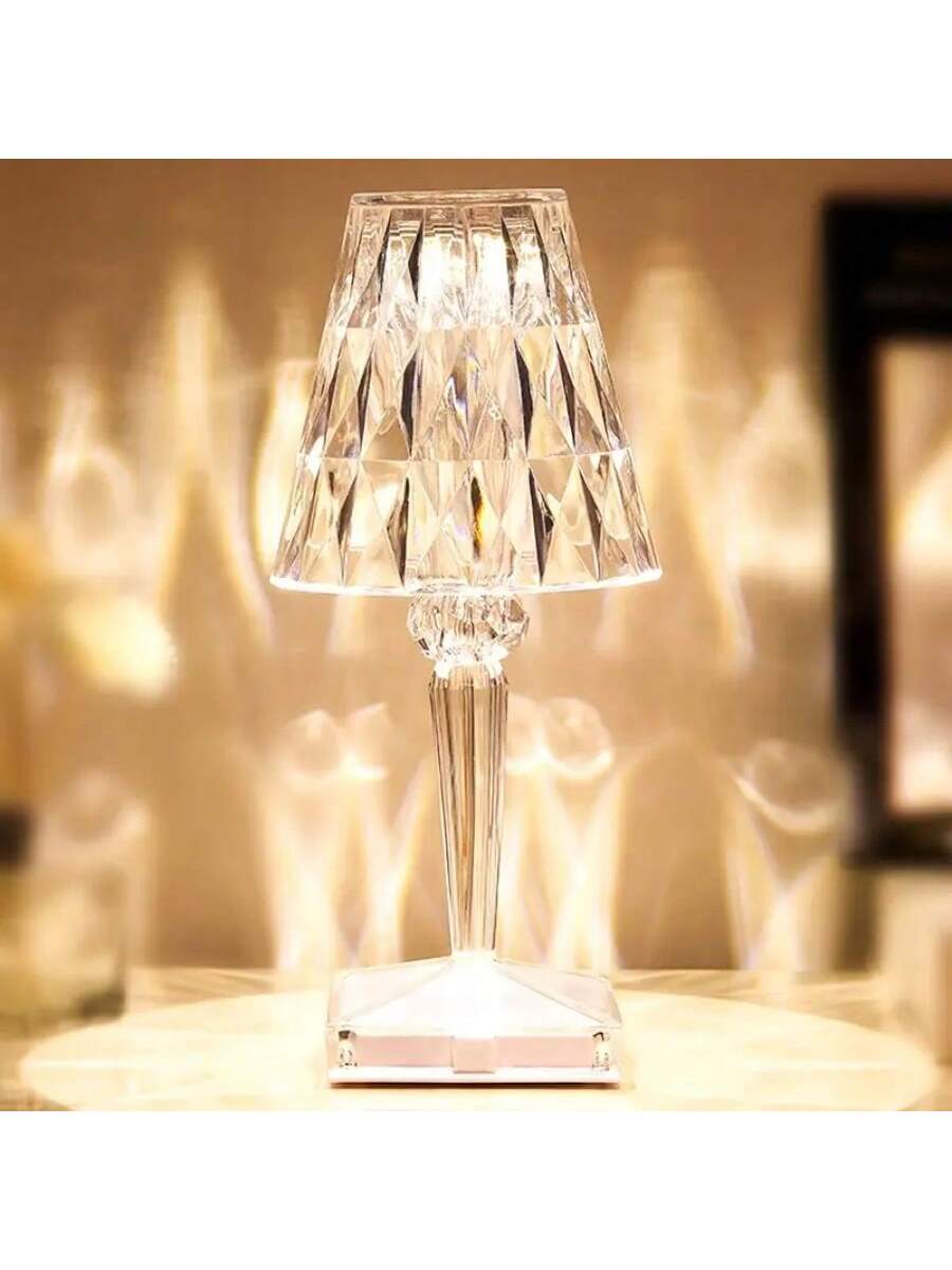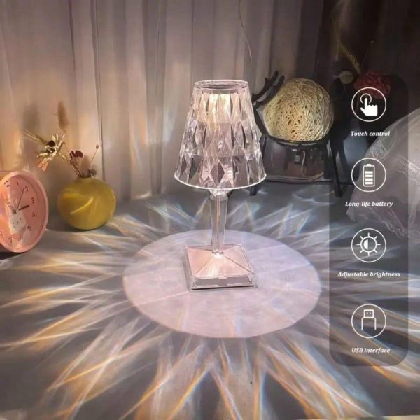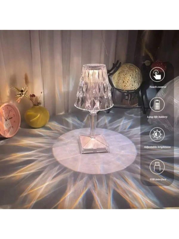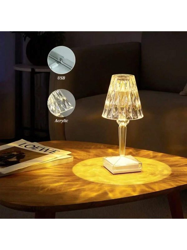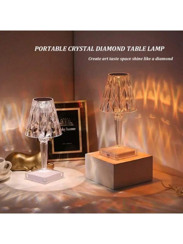 This portable crystal table lamp combines elegance with practicality, featuring a stunning acrylic build and touch control functionality. It offers 3 color options and adjustable brightness, making it suitable for any room or occasion. The cordless, rechargeable design ensures convenience, while the lightweight construction allows for easy movement between rooms. Whether used as a night light, a desk lamp, or a decorative accent, this lamp enhances the atmosphere with its modern design and warm illumination.