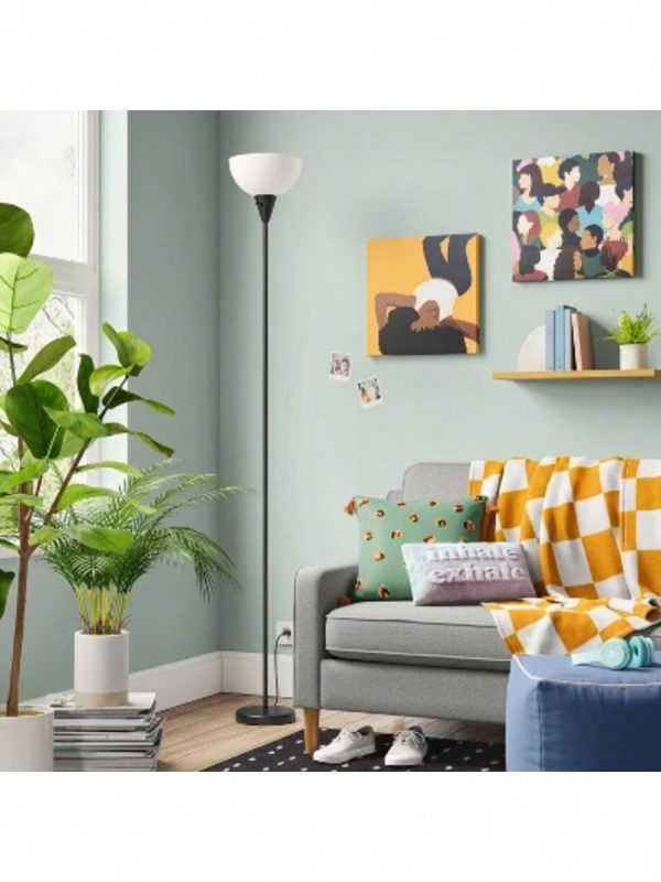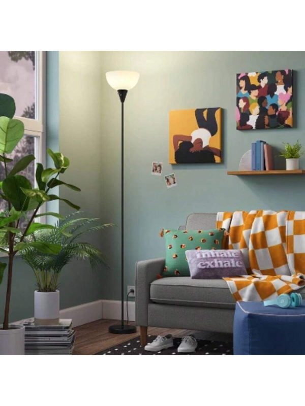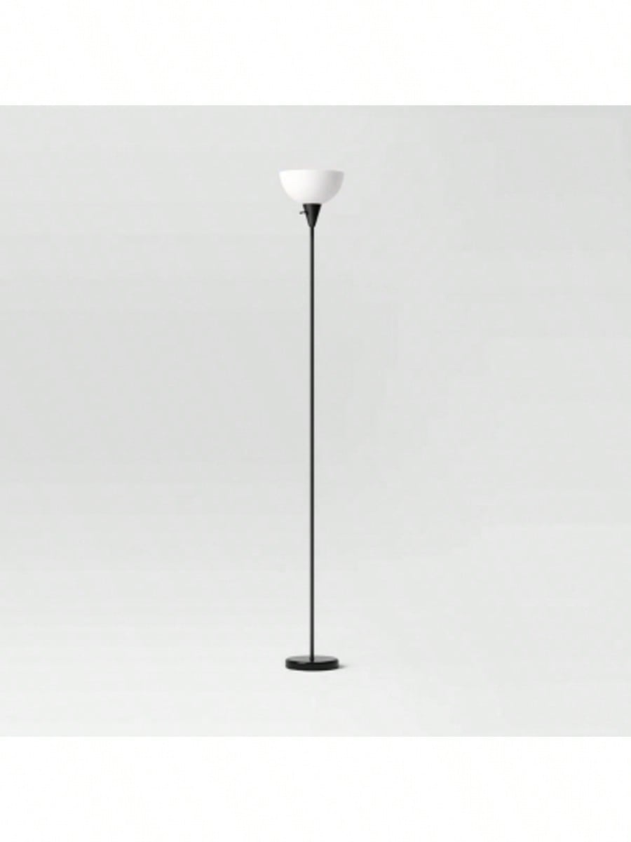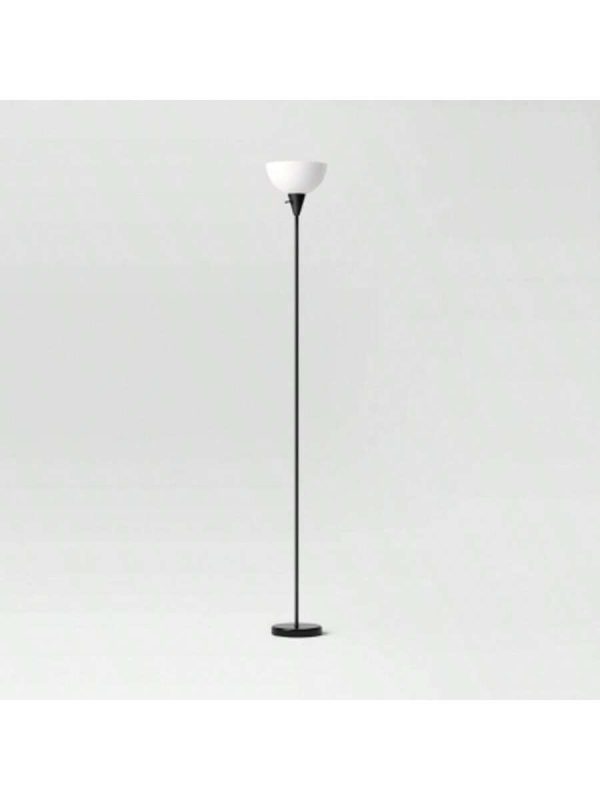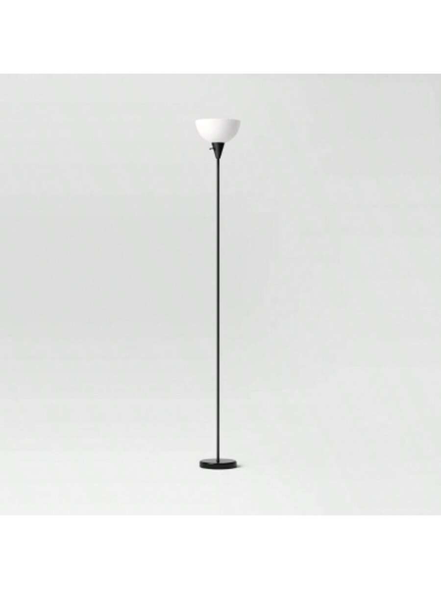 This elegant torchiere floor lamp from Room Essentials brings modern style and efficient lighting to any space. The sleek black finish makes it a versatile addition to a variety of room styles, from living rooms to offices. The upward-facing design provides ambient lighting, making it ideal for creating a cozy atmosphere or filling a room with soft, diffused light. The tall structure ensures that the lamp will illuminate your space effectively, while its simple design fits effortlessly into any room decor.