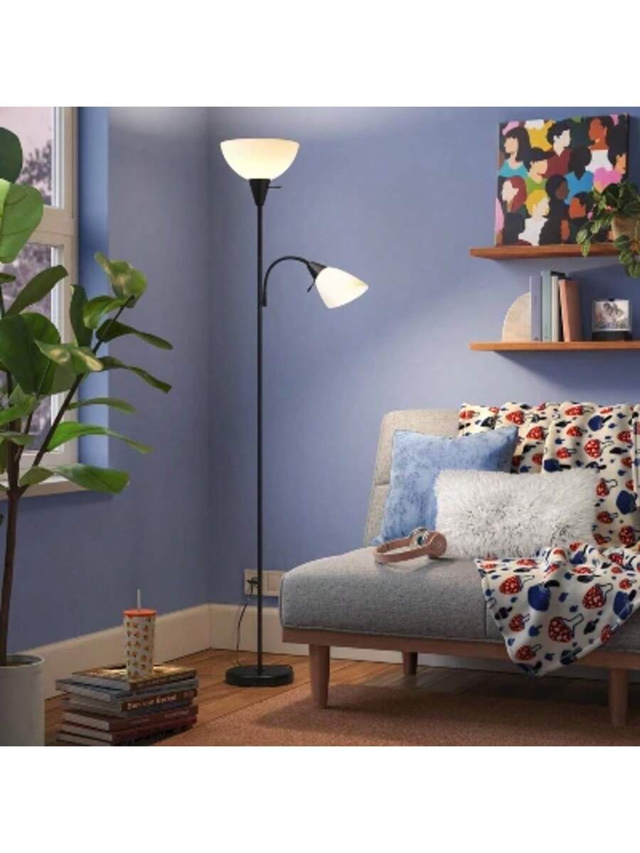 Torchiere With Task Light Floor Lamp -Light Bulbs Not Included Black